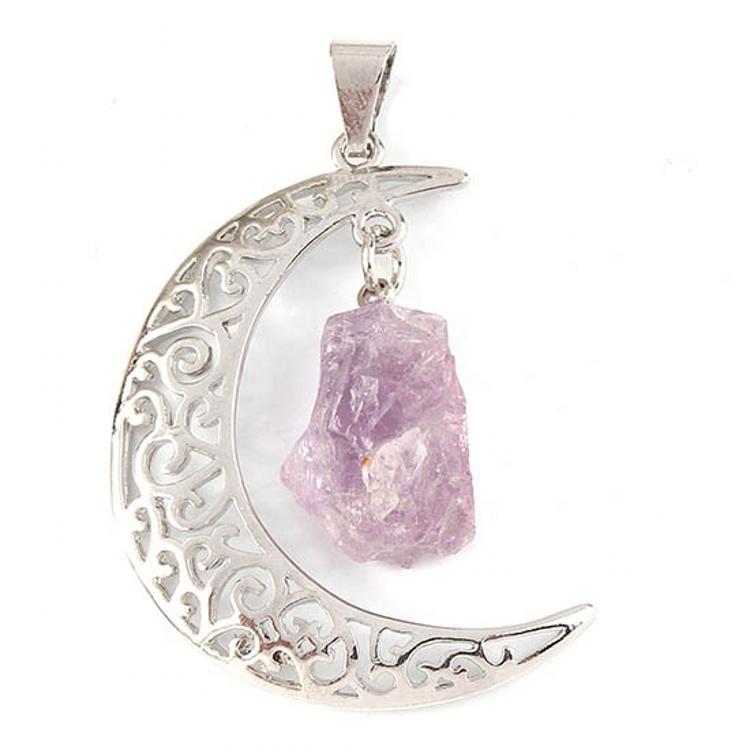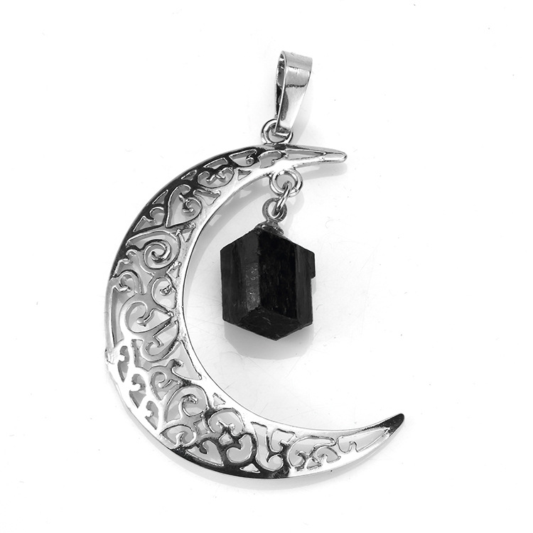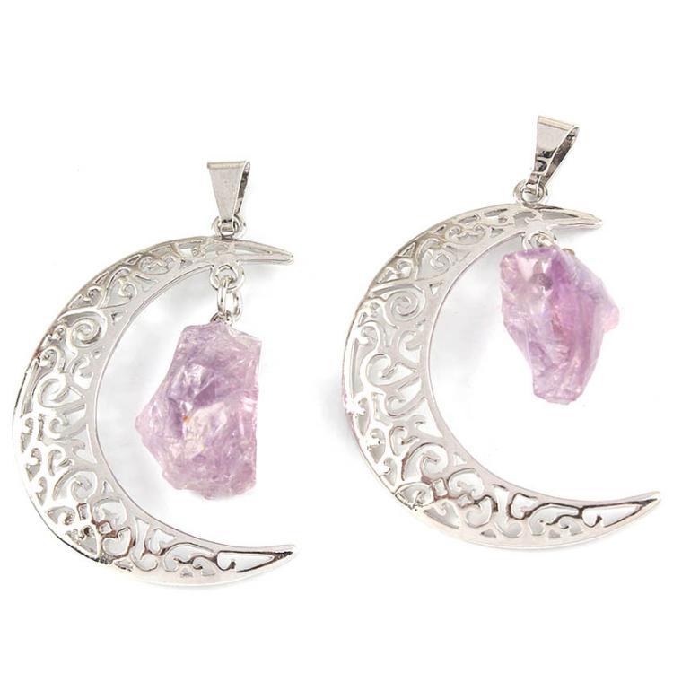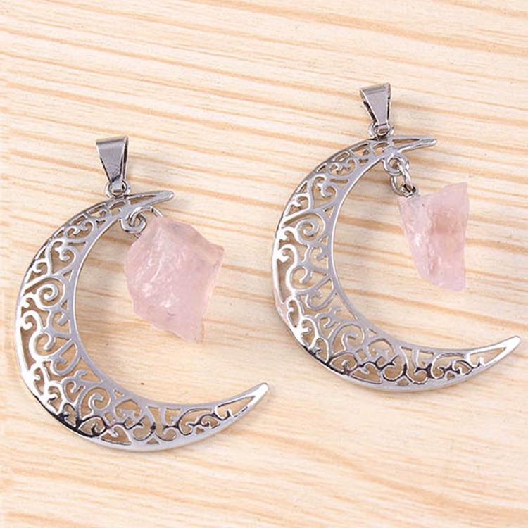 Natural Crystal Indeterminate Crescent Shape, Moon And Stars Pendant Necklace, European And American Fashion Jewelry