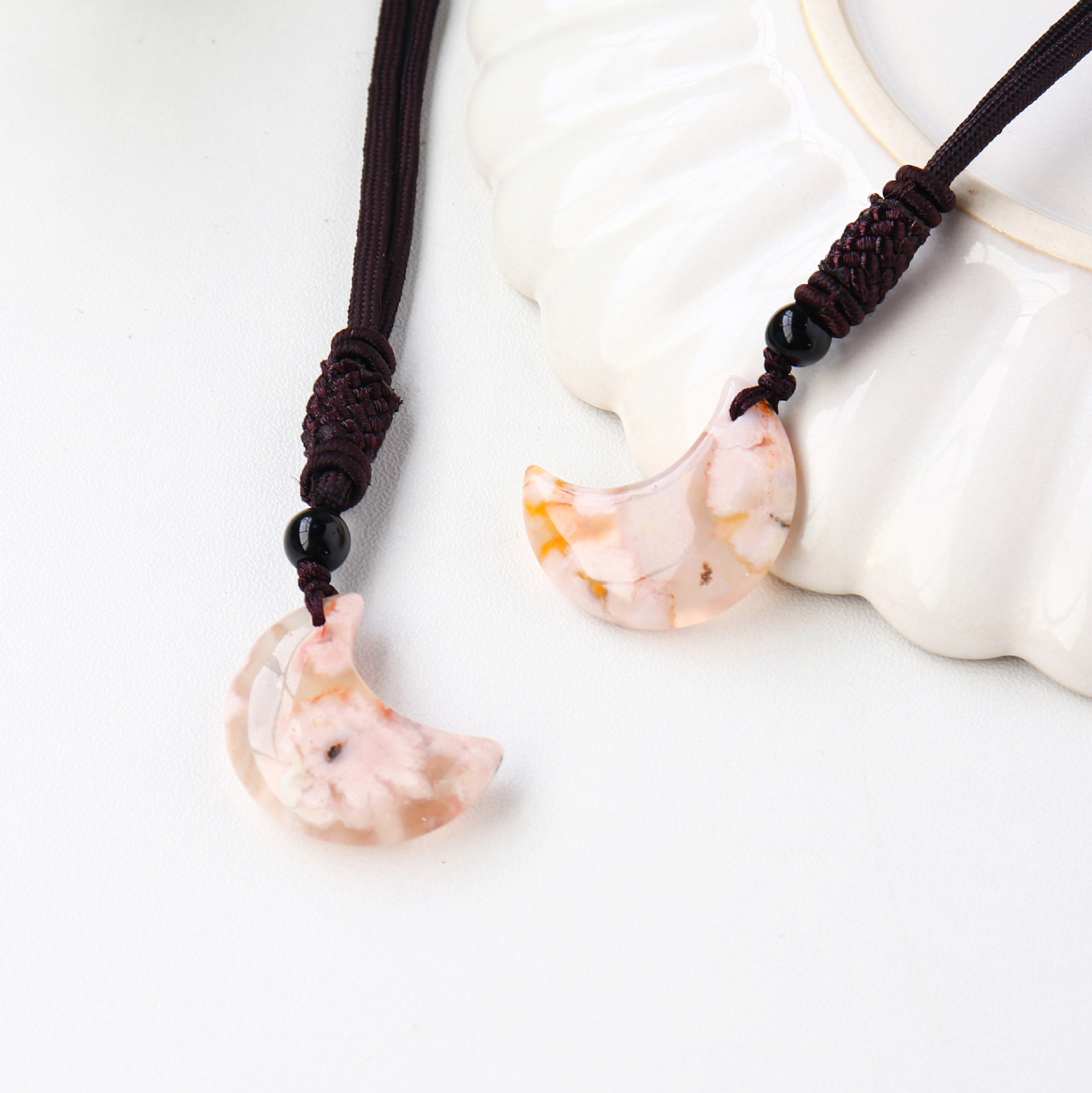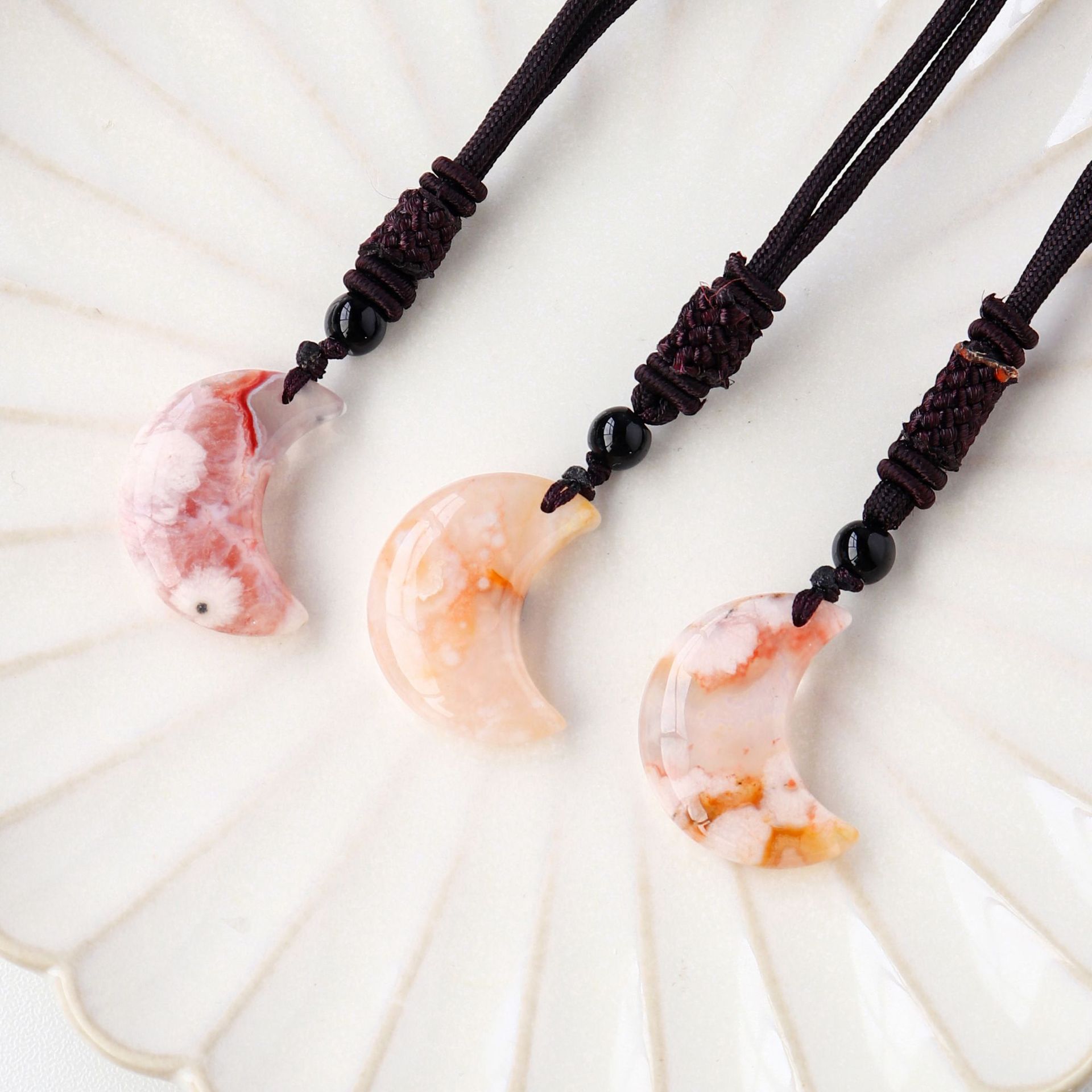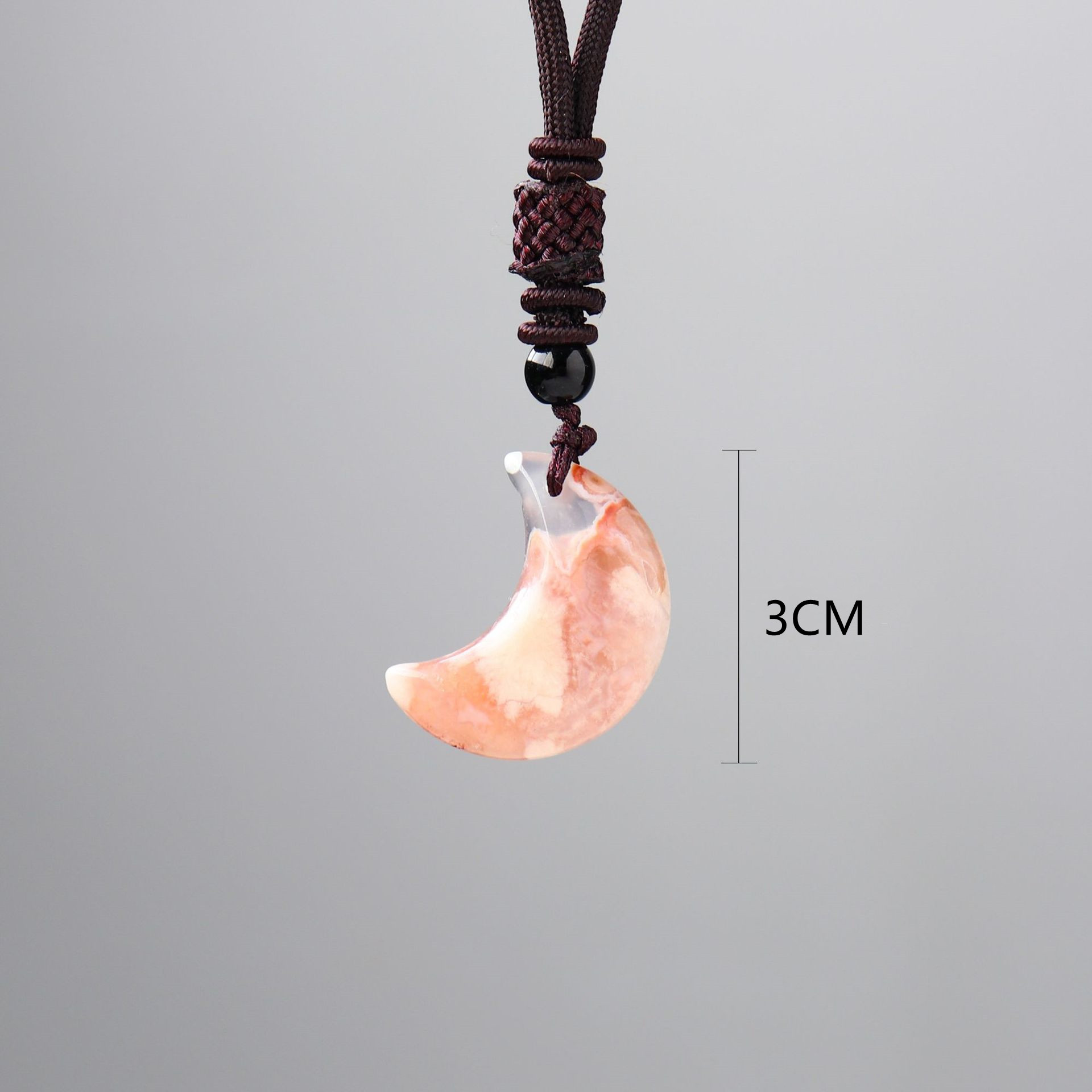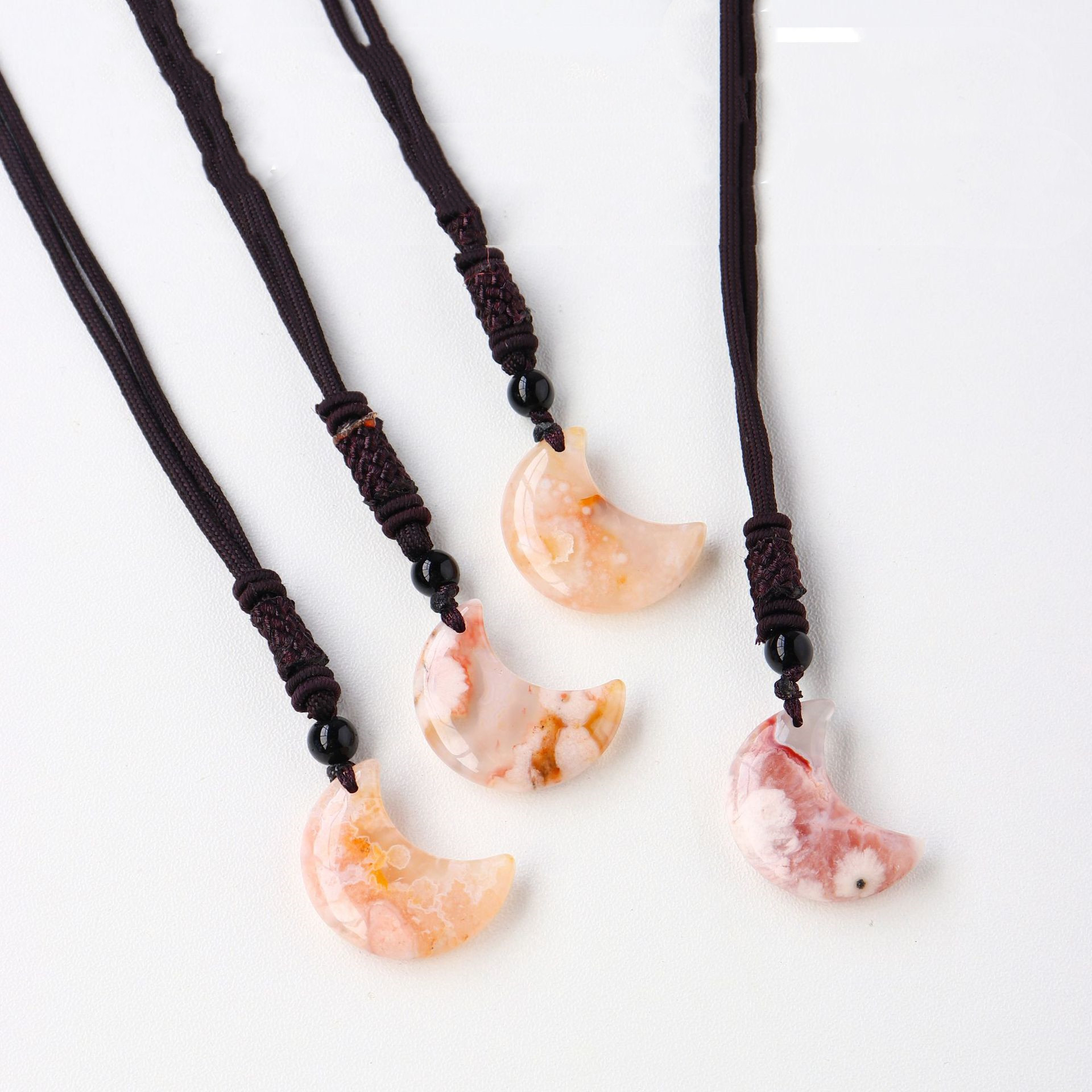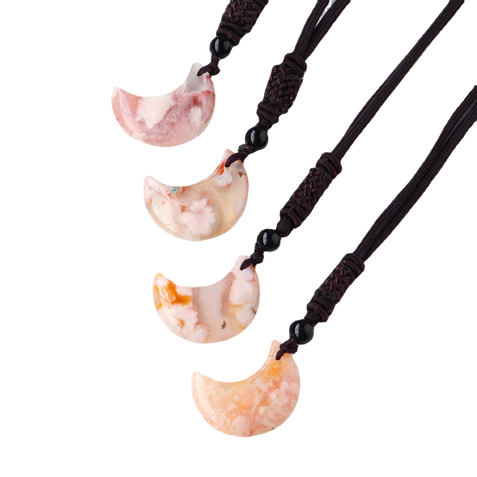 Product No.: Cherry Blossom Agate Moon Pendant (Black Pull Ring Rope)