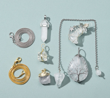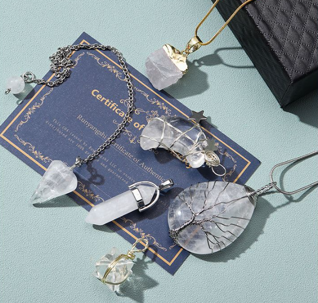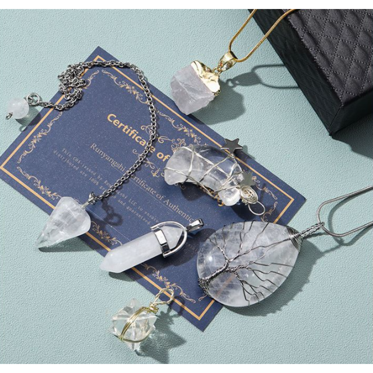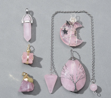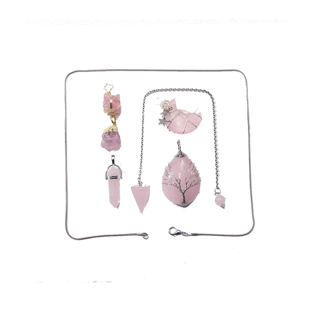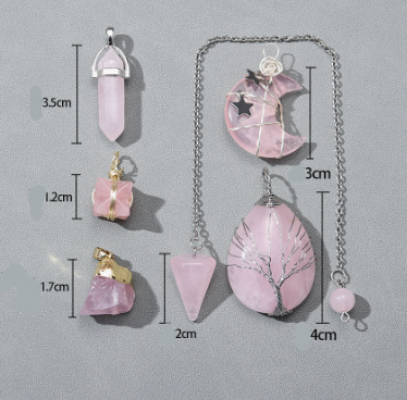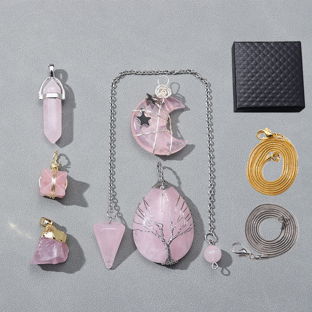 Natural Crystal Pink And White Original Stone Moon Water Drop Pendant Set Accessory Necklace