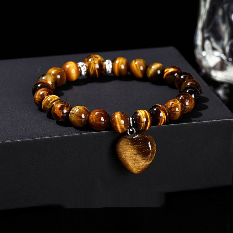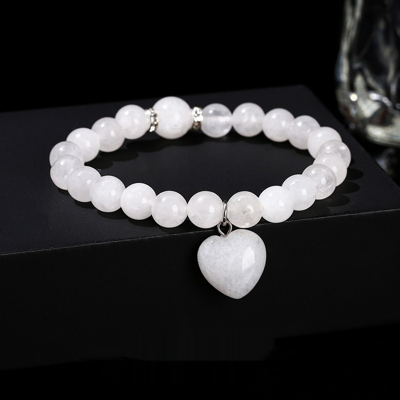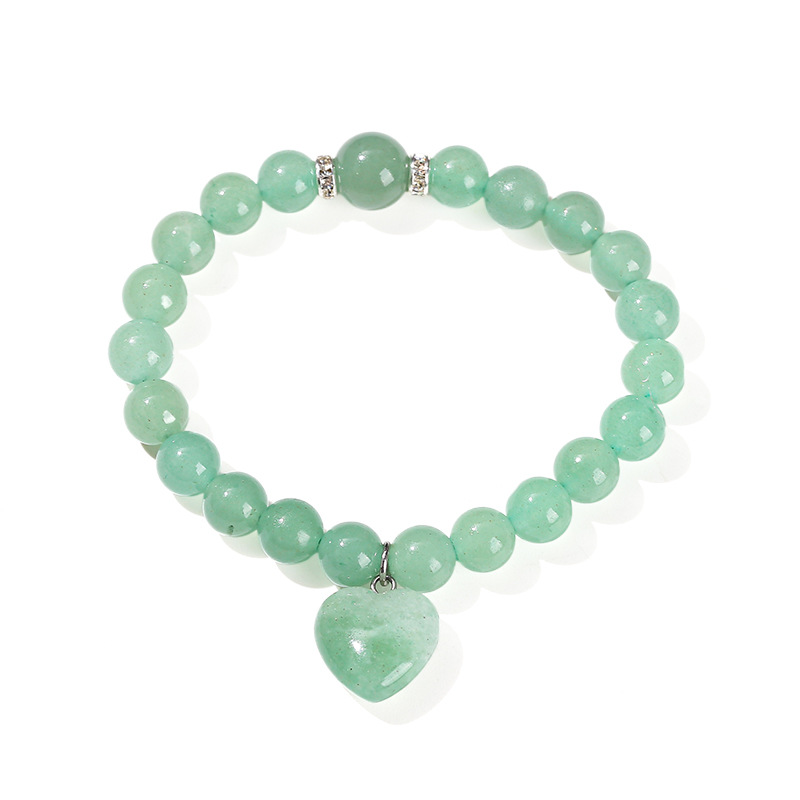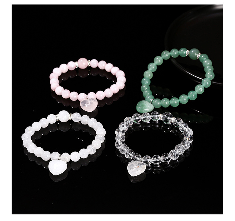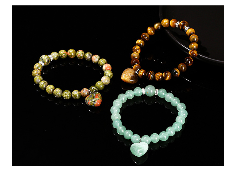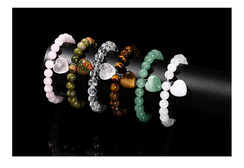 Color: natural pink crystal love pendant bracelet, natural green aventurine love pendant bracelet, natural white crystal love pendant bracelet, natural yellow Tigereye love pendant bracelet, natural white jade love pendant bracelet, natural unakite love pendant bracelet