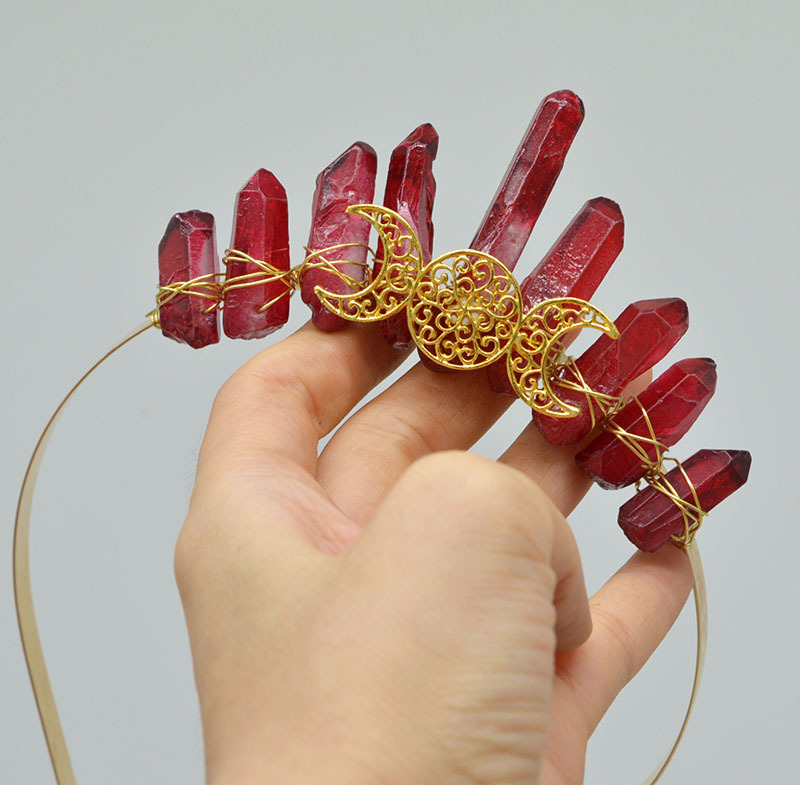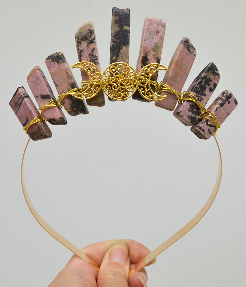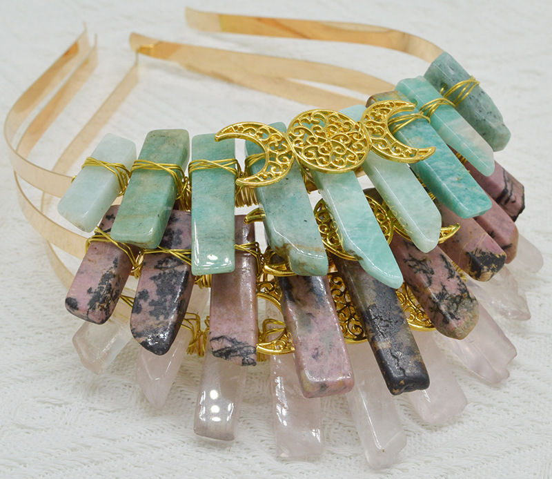 Color: green Dongling full gold March ornament small headband, Amazon full gold March ornament small headband, pink crystal full gold March ornament small headband, red pattern full gold March ornament small headband, obsidian full gold March ornament small headband, white crystal full gold March ornament small headband, Indian agate full gold March ornament small headband, citrine full gold March ornament small headband, 35 small hair bands full of gold three moon ornament, 61 small hair bands full of gold three moon ornament, No. 76 gold March accessories small headband