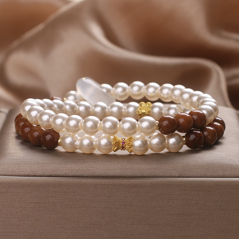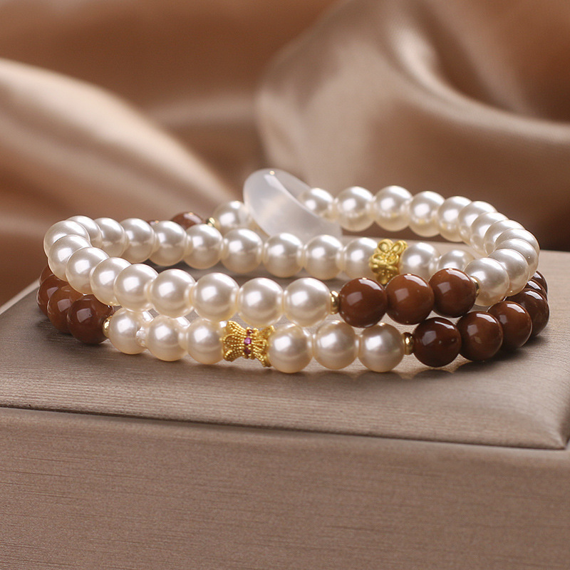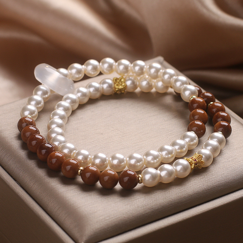 Color: white freshwater pearl Cook double circle flexible ring bracelet