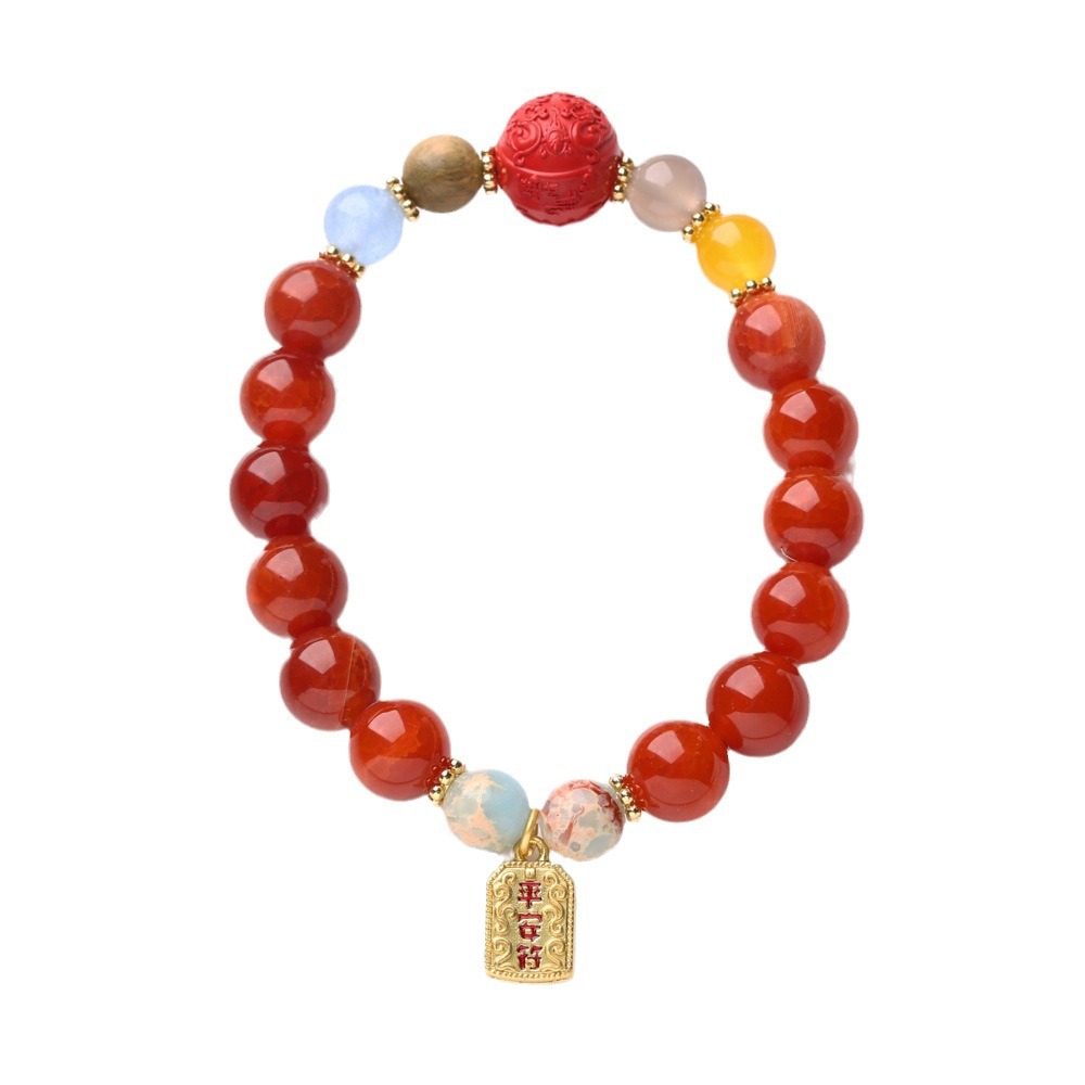 Main materials: dragon patterned agate, red sand (cinnabar) accessories: yellow agate, smoky purple agate, Barbie sandalwood, blue chalcedony, Shoushan stone, copper gold-plated accessories