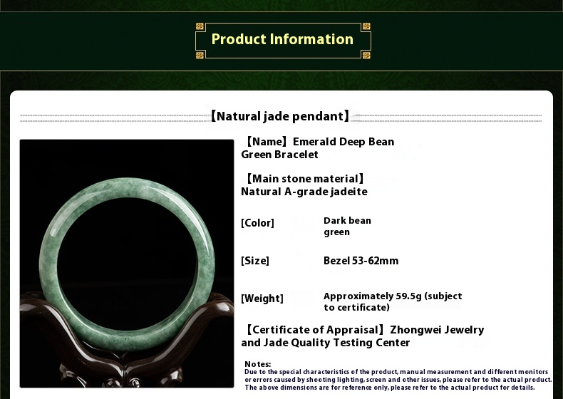 Style: Emerald deep pea green bracelet (with Certificate, gift box)