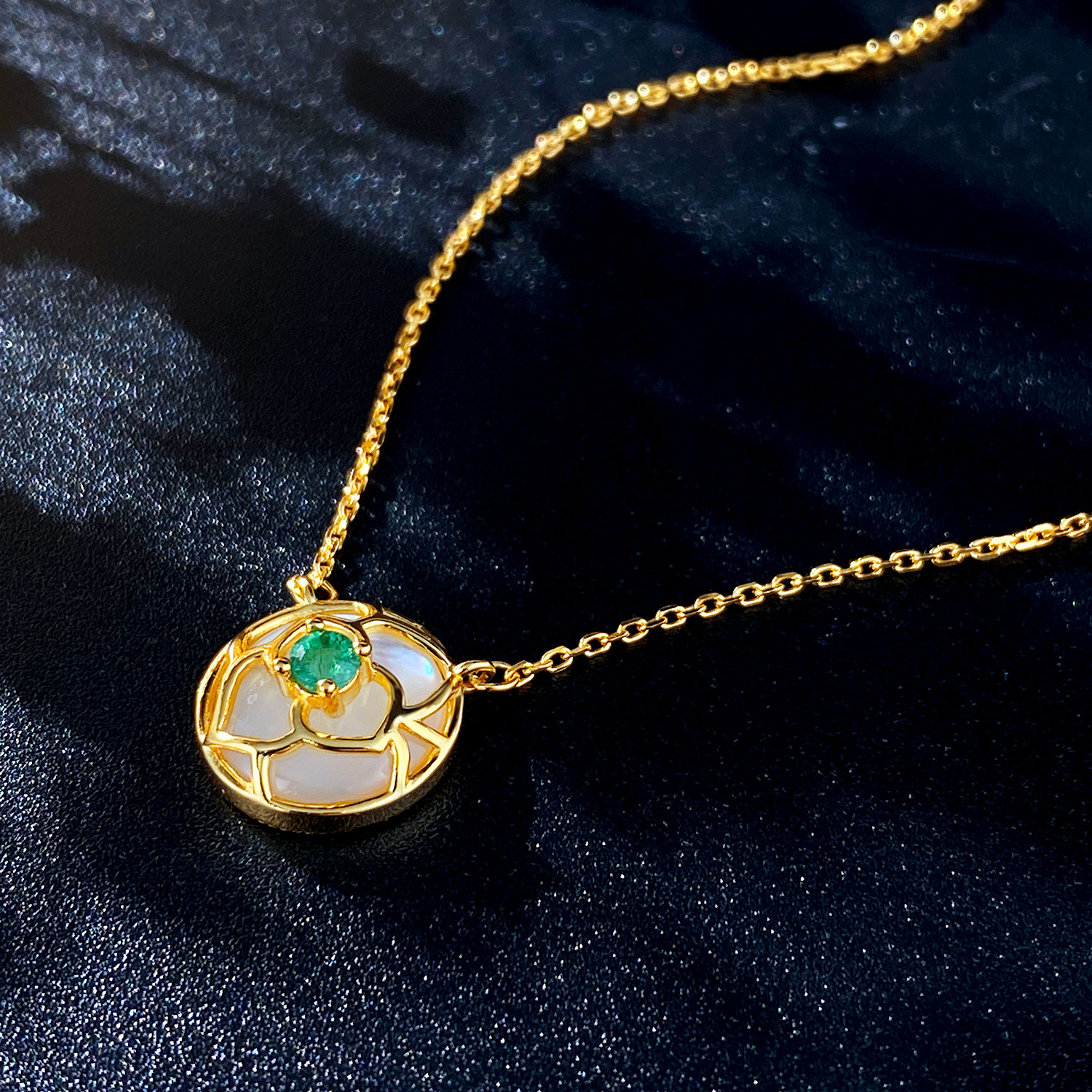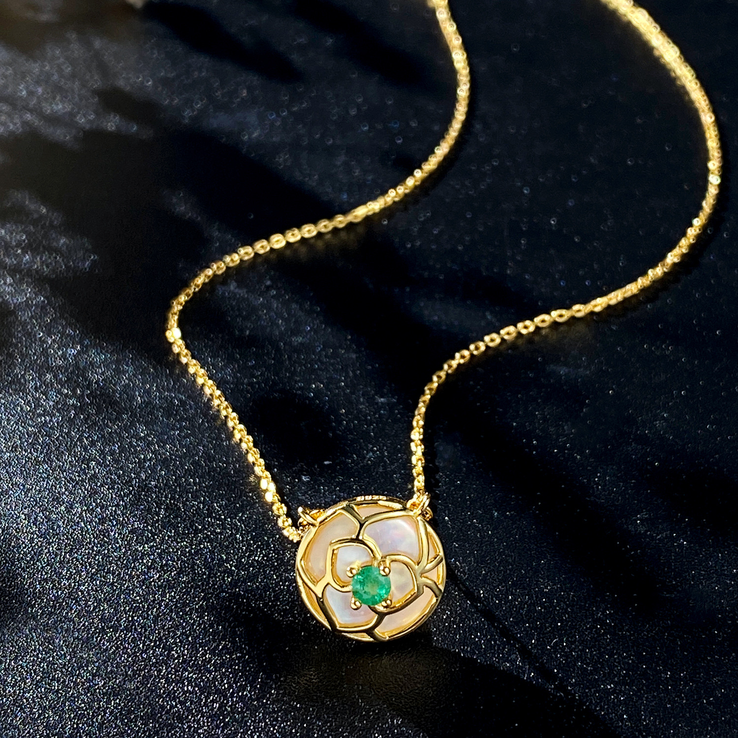 Specification: about 12 * 12mm, chain length 40+5cm, round emerald about 3mm, 0.2Ct