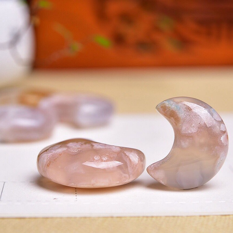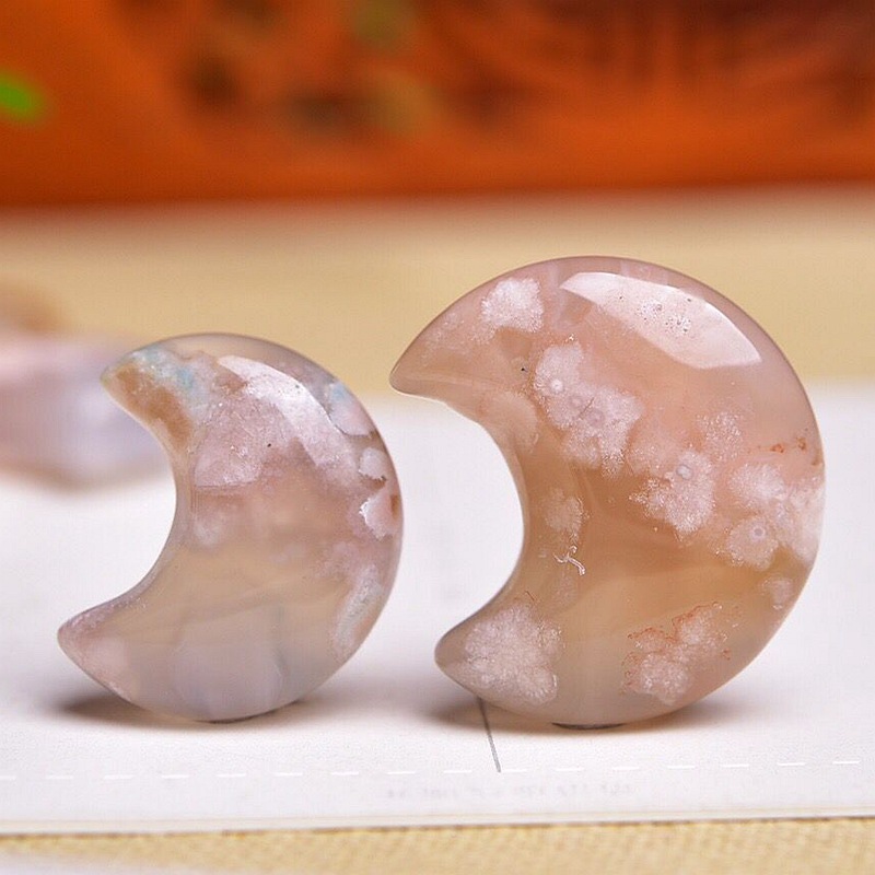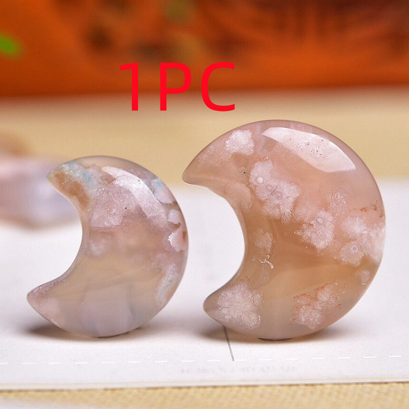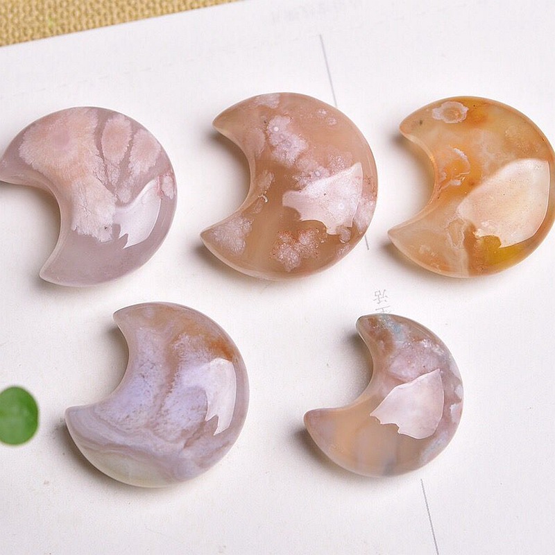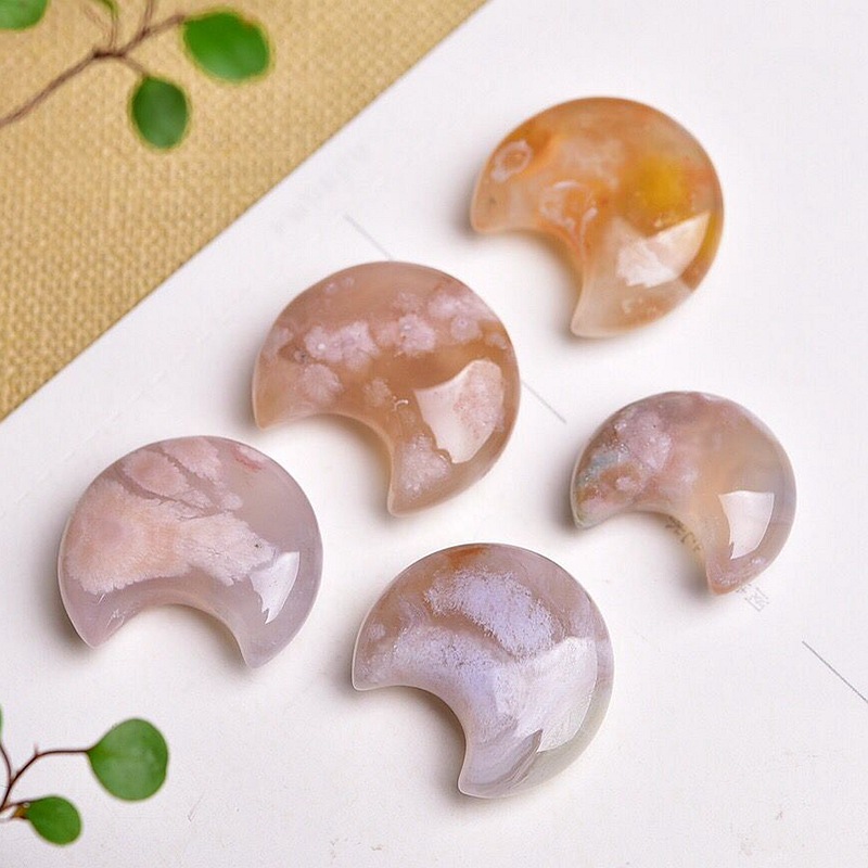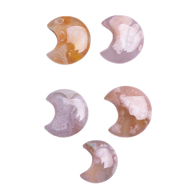 Natural Flower Agate Moon Pendant Crystal Transparent