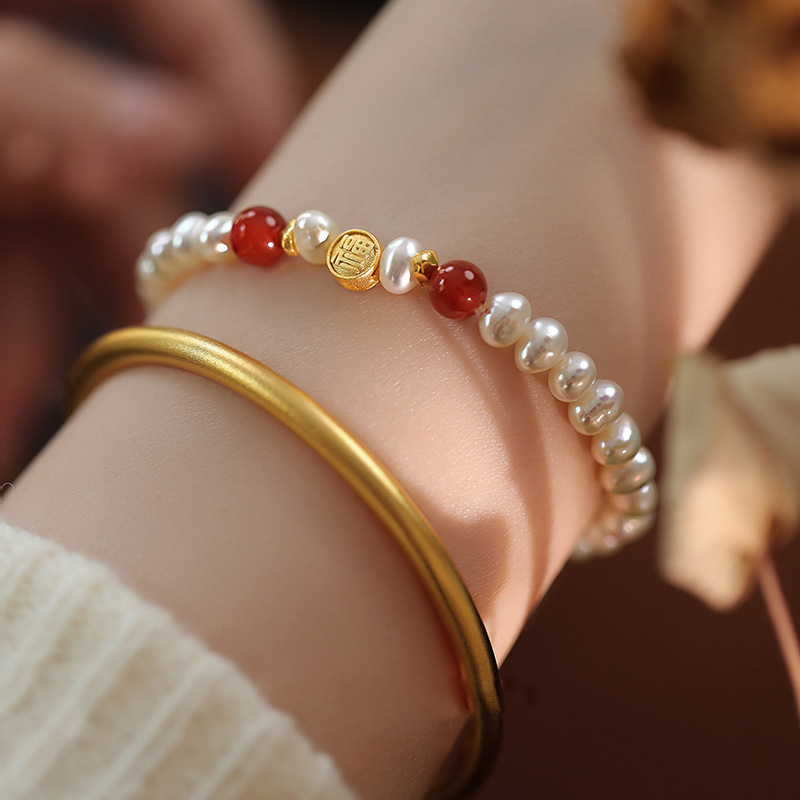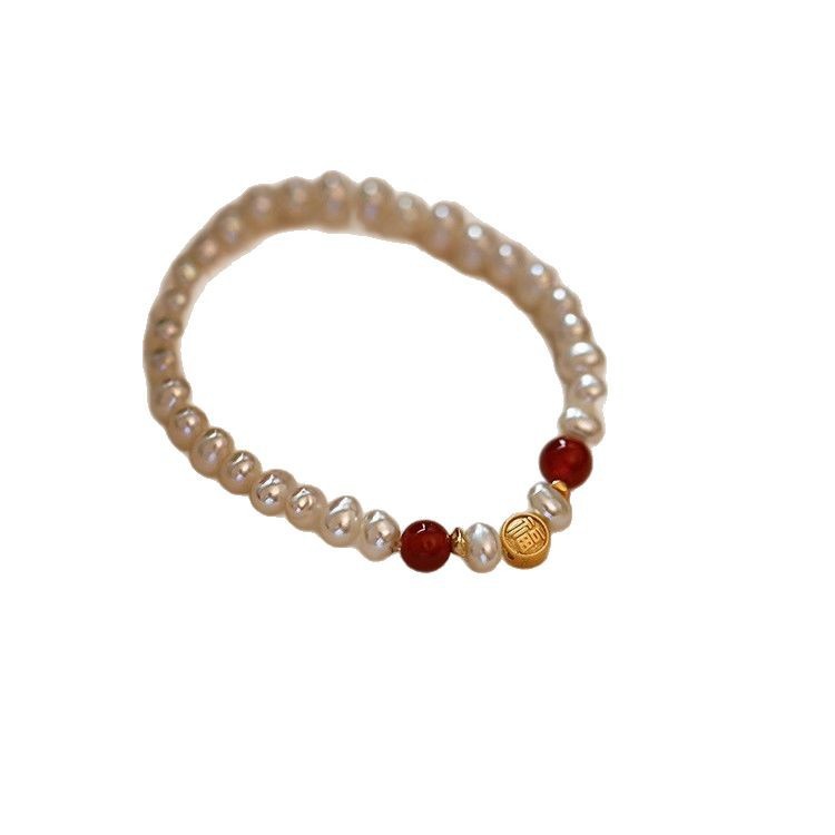 Color: White Shell Cat Freshwater Pearl Silver Bracelet (Extended Chain Style, 5cm extended chain)