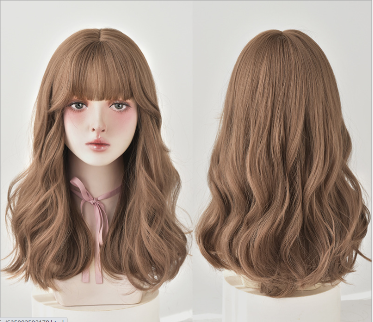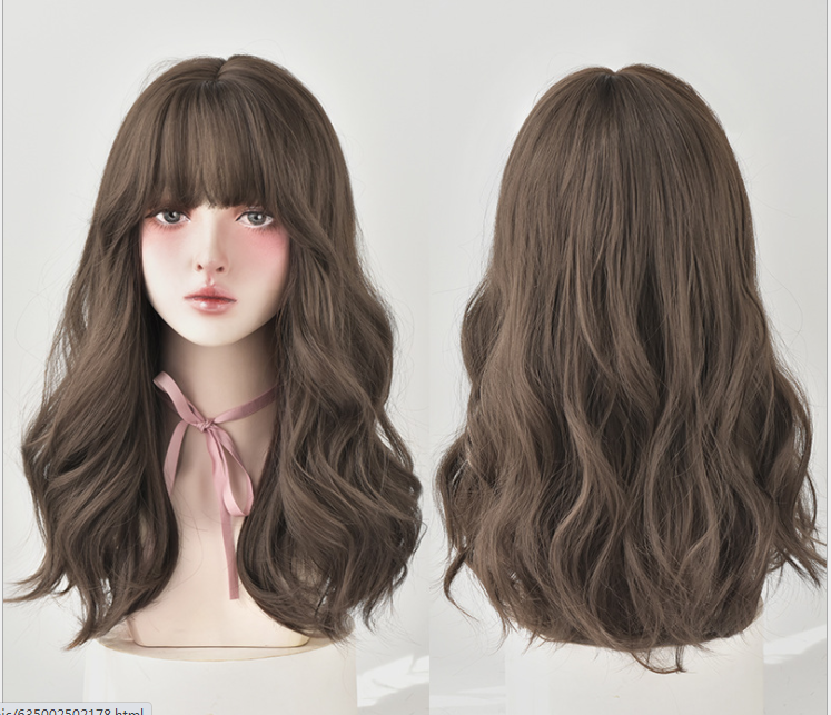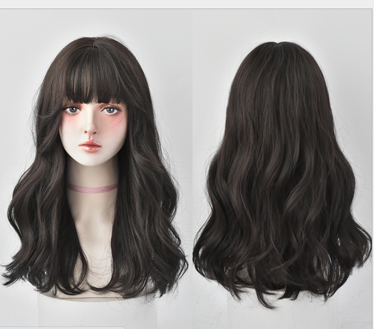 Natural Full Headgear Style Long Curly Hair With Air Bangs