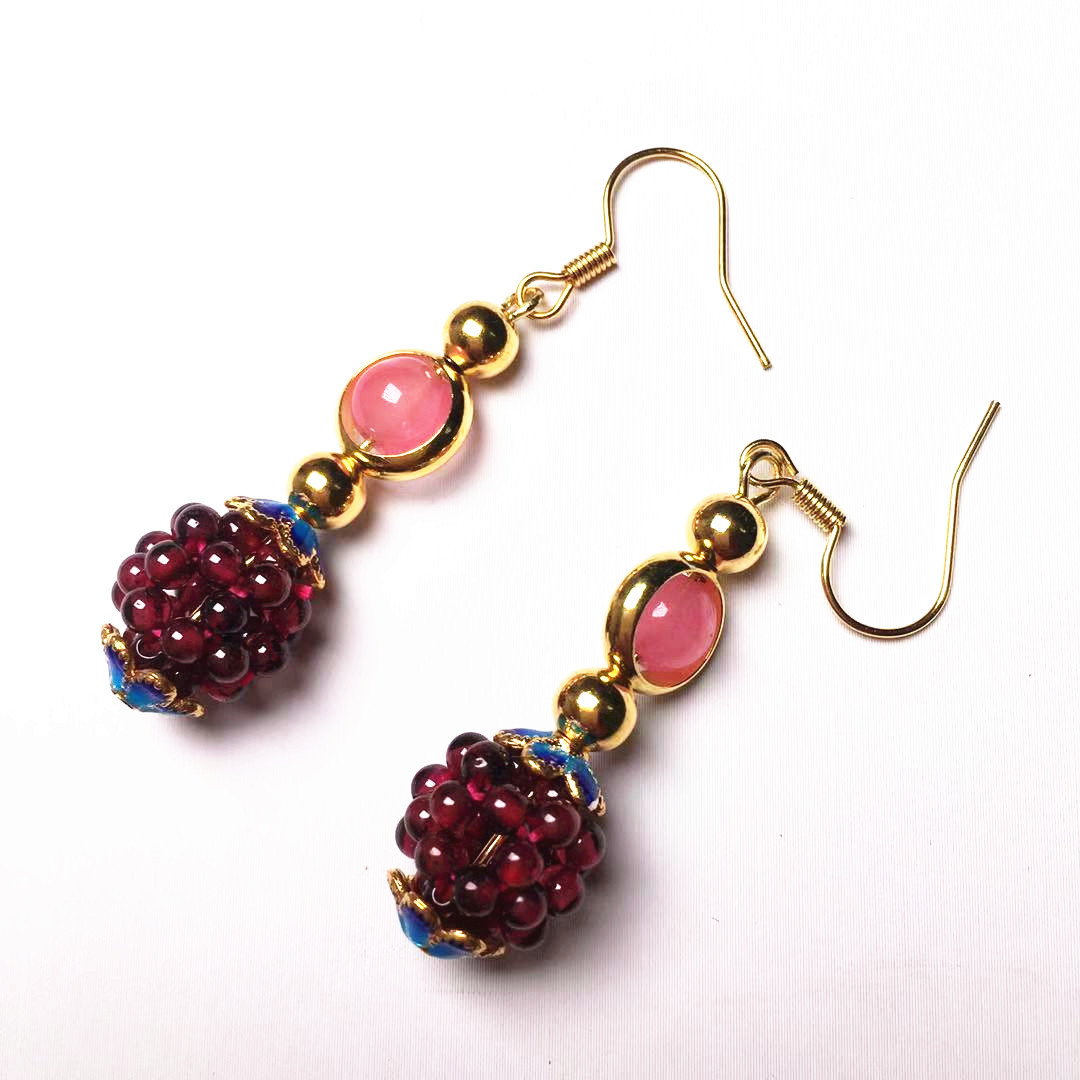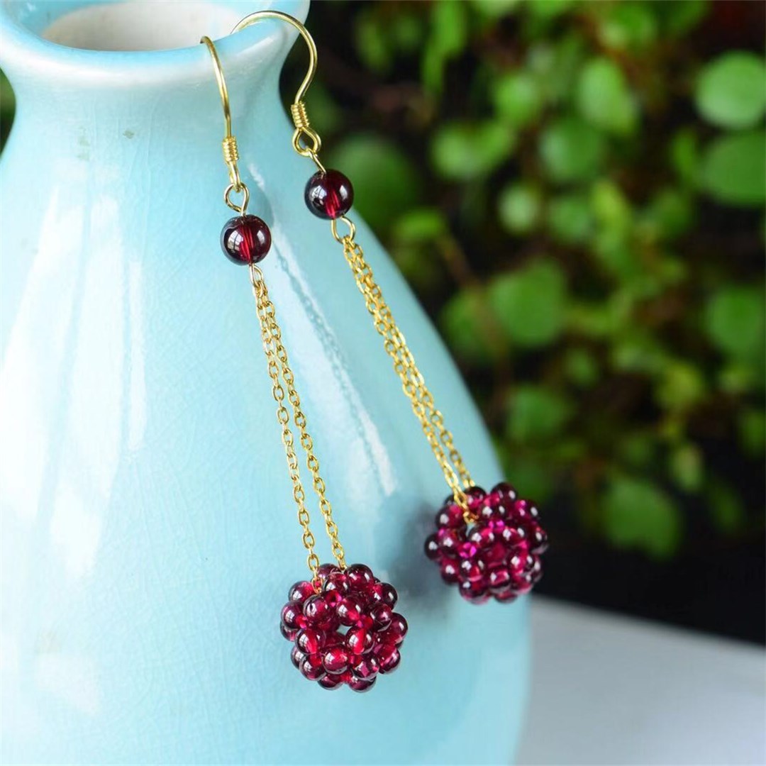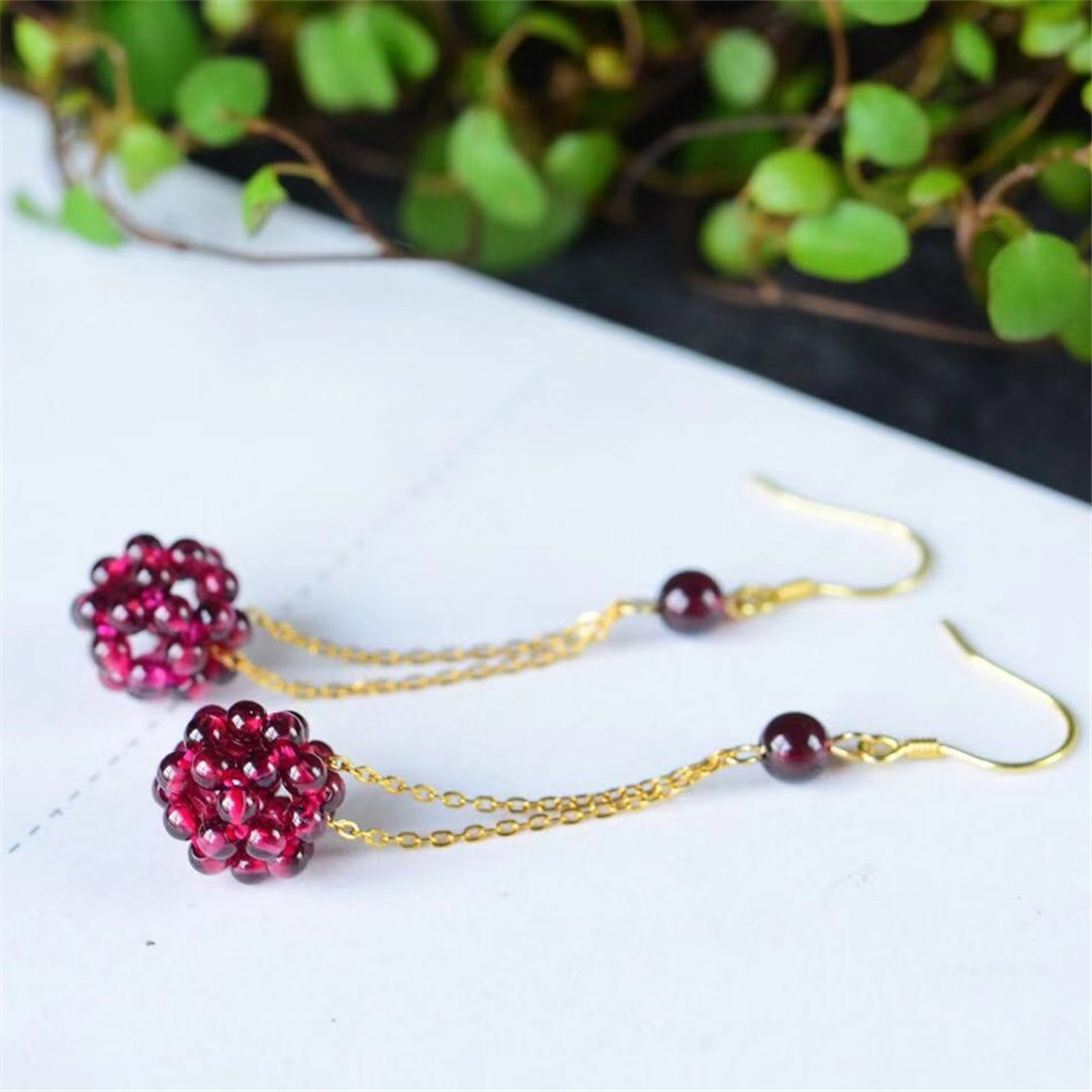 Natural Garnet Woven Hydrangea Earrings