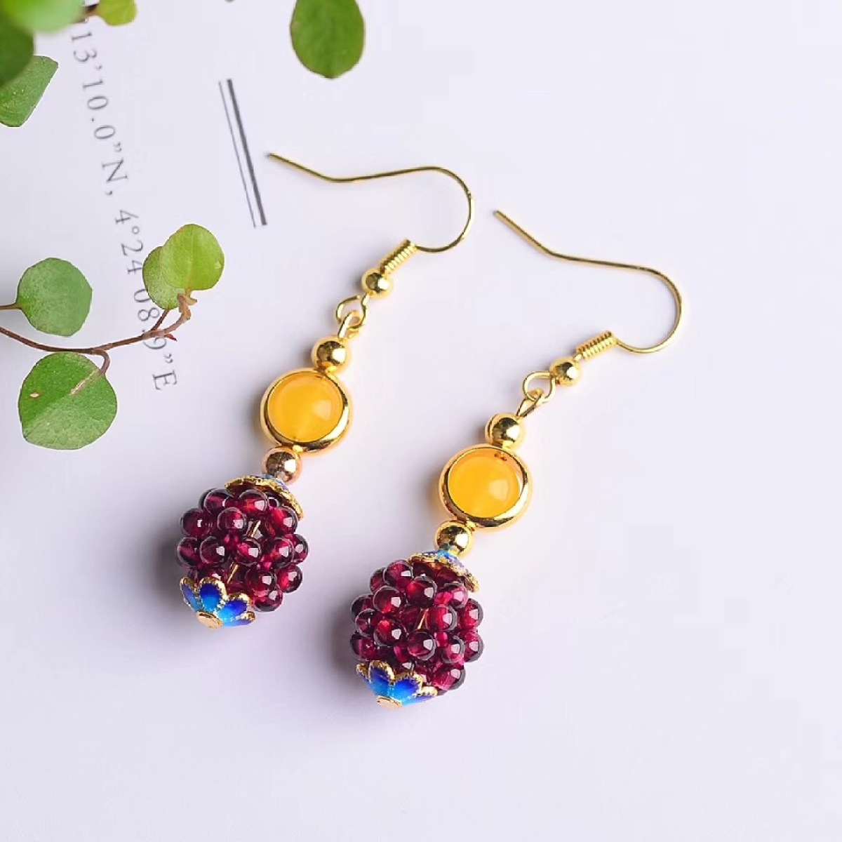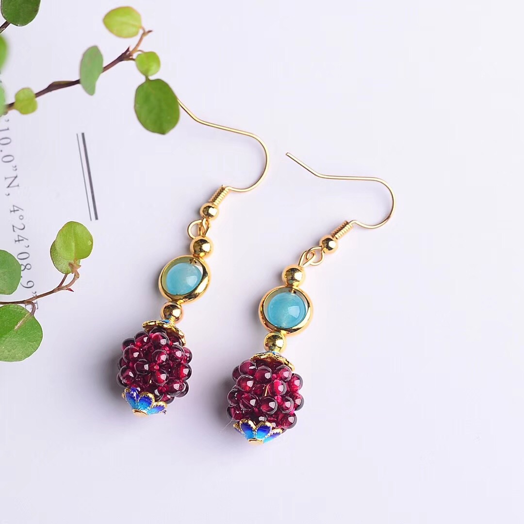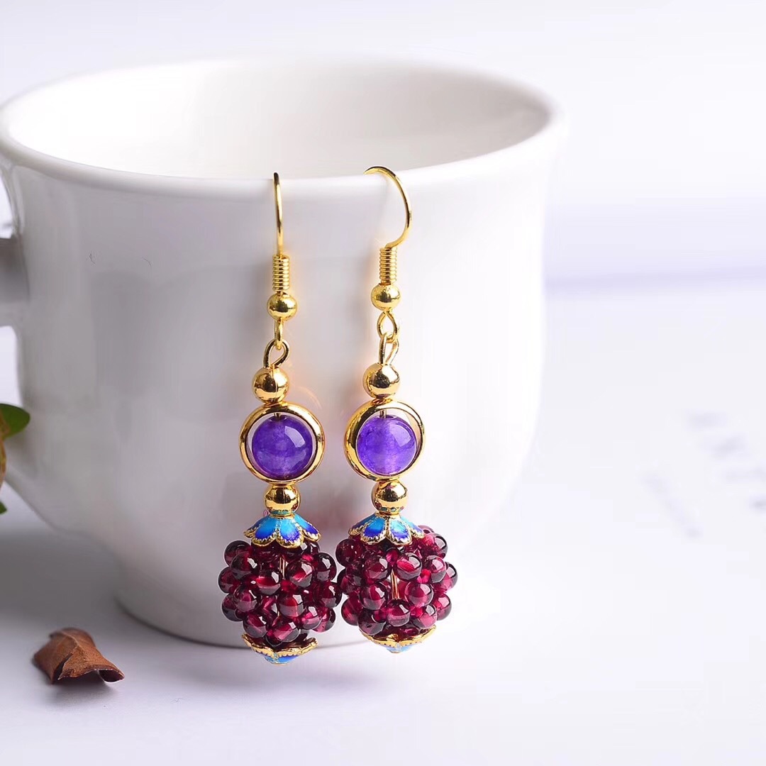 Natural Garnet Woven Hydrangea Earrings