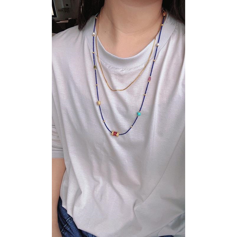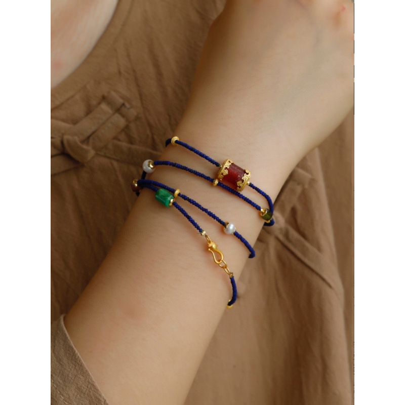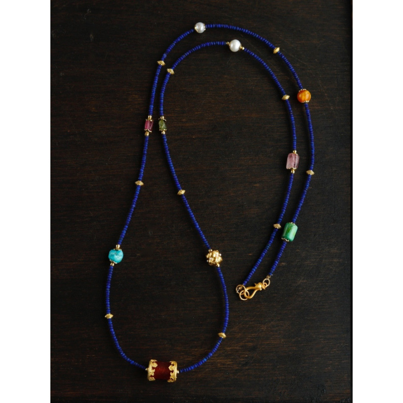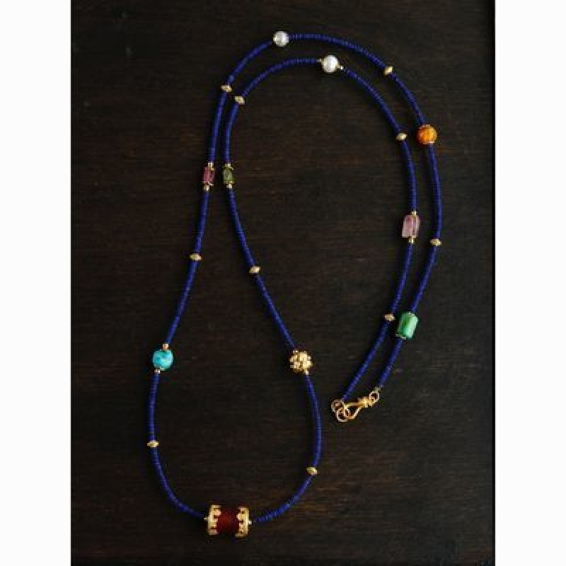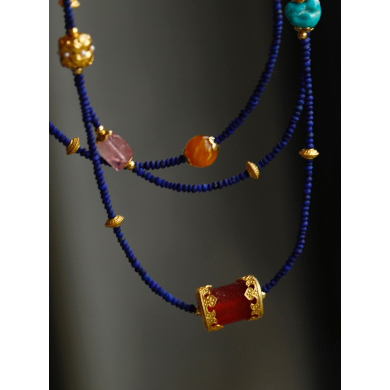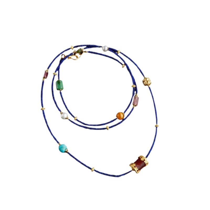 Color: natural lapis lazuli small bead multi-circle multi-treasure design bracelet necklace dual-use style matching pearl tourmaline ornaments