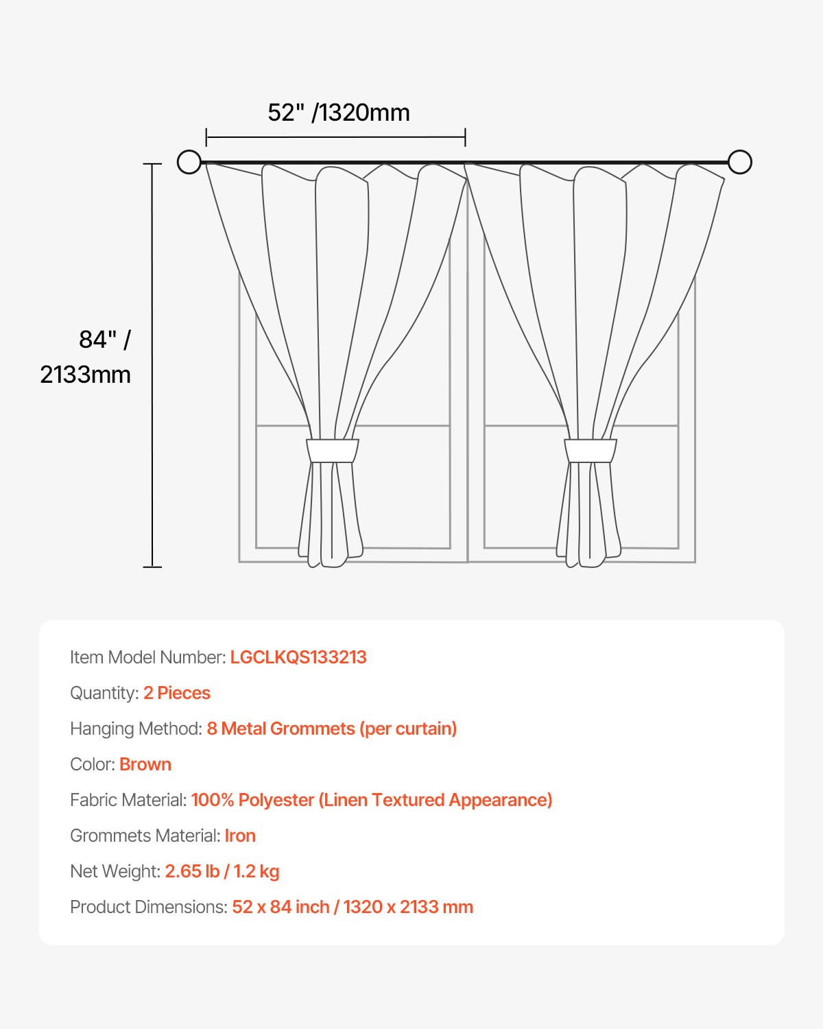 Natural Linen Curtains 52 X 84 Inch 2 Panels Set Grommet Light Filtering Thick