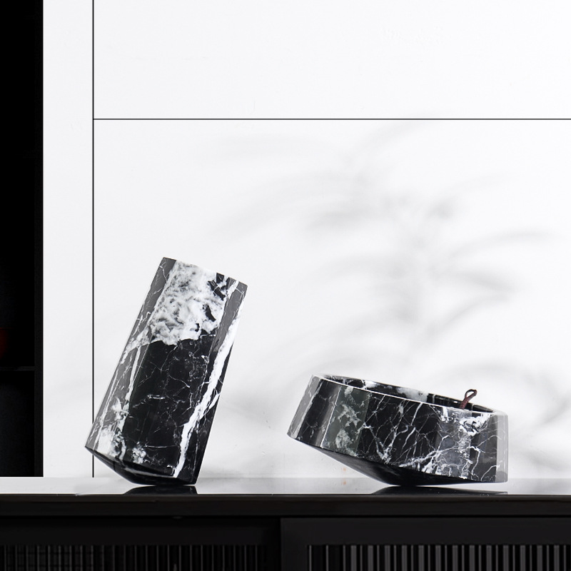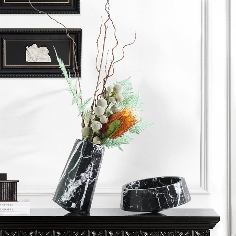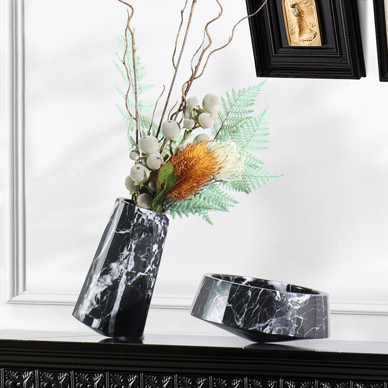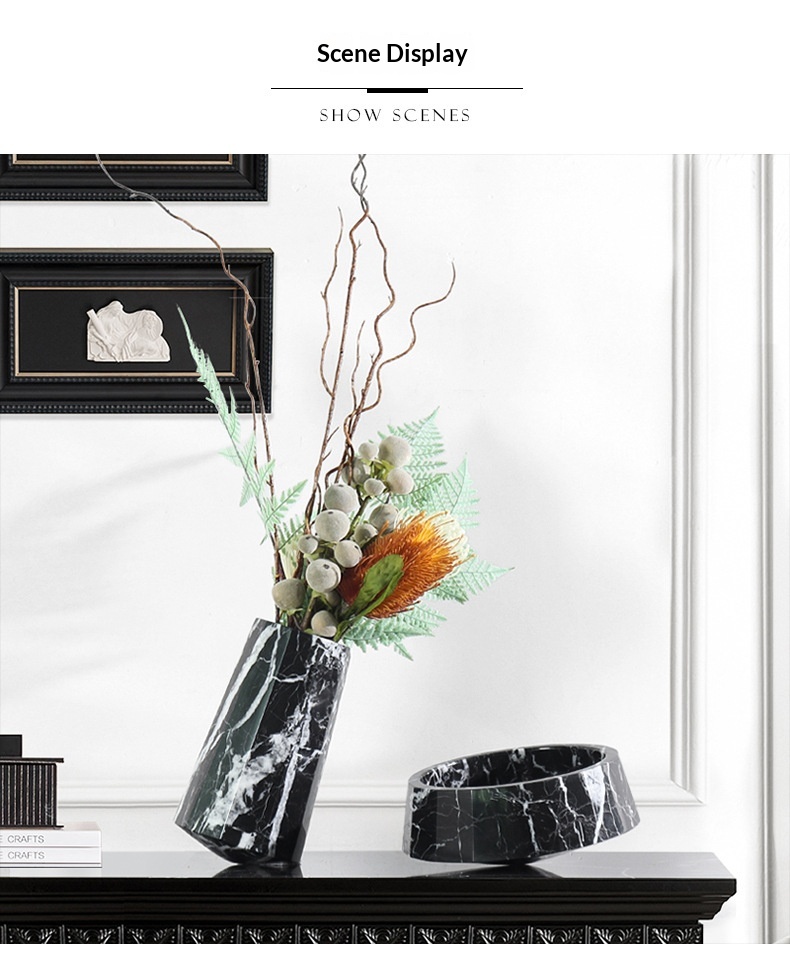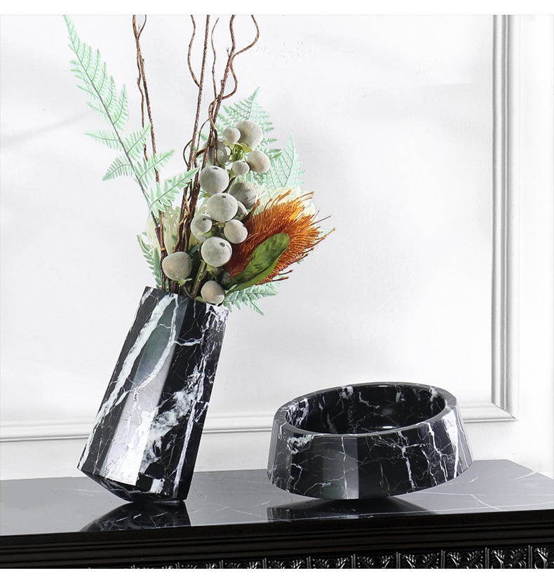Color: Black and white root-patterned tall vase HP0191HB, black and white root-patterned short fruit bowl GP0061HB