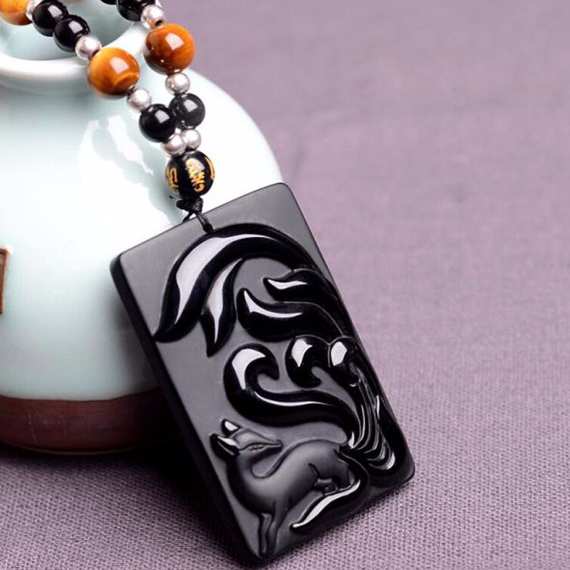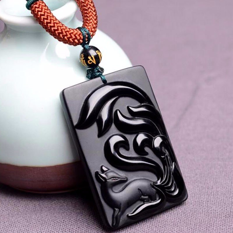 Natural Obsidian Fox Pendant