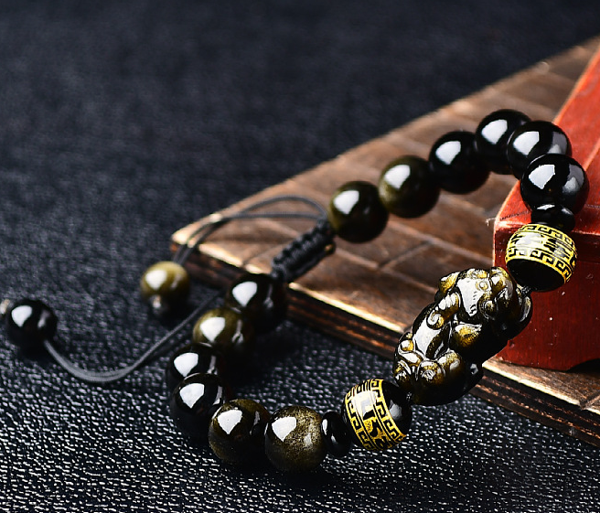 Natural Obsidian Pi Xiu Bracelet Original Hand-woven