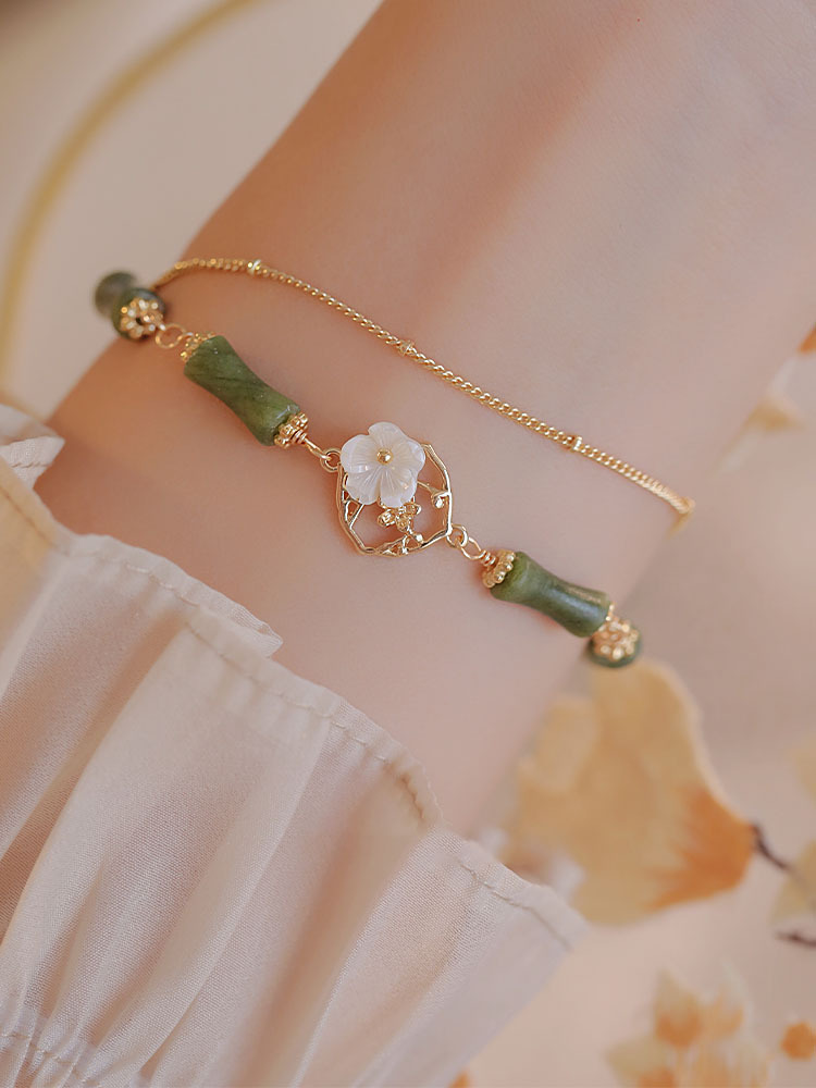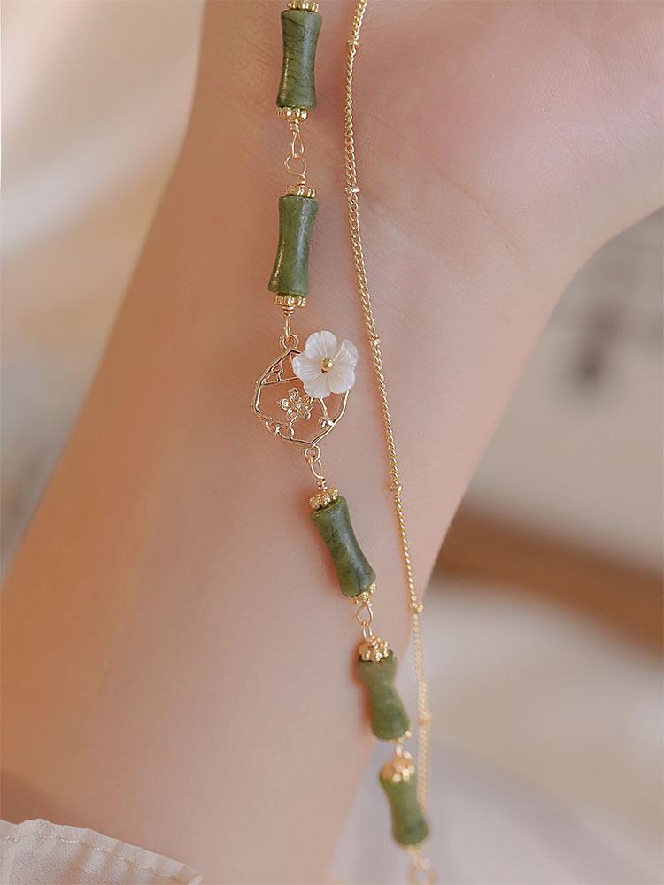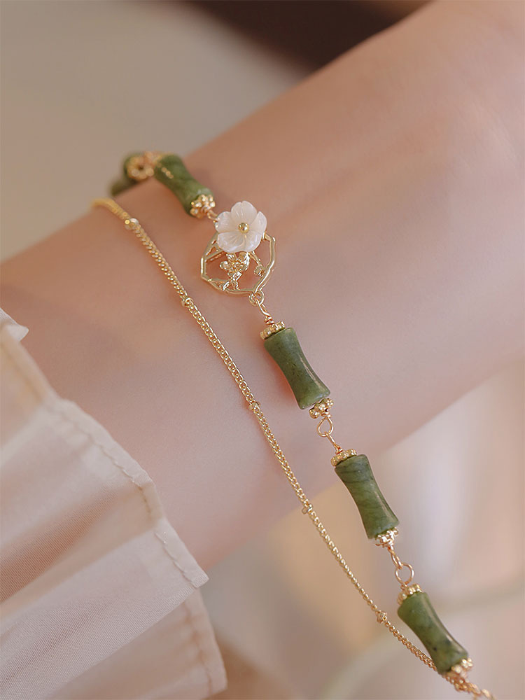 Natural Olivine Bracelet Chinese Double Layer Twin Bells Of Ireland