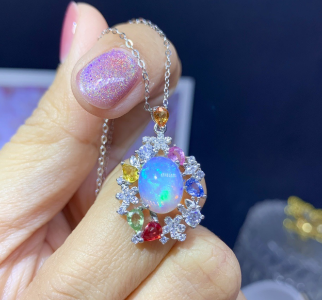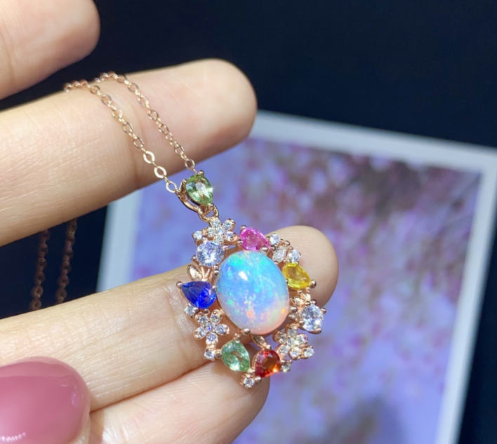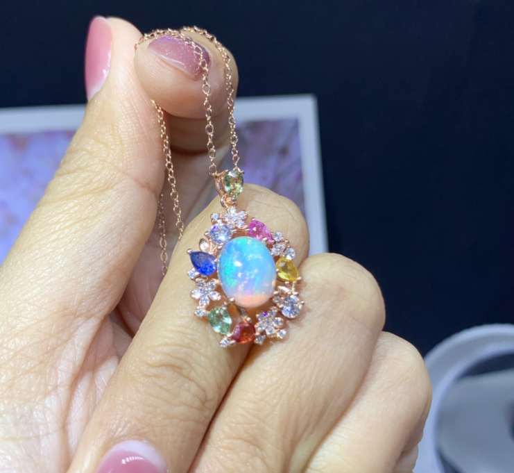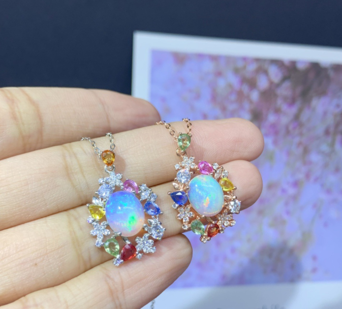 Material: Opal + color sapphire 8*10+3*4