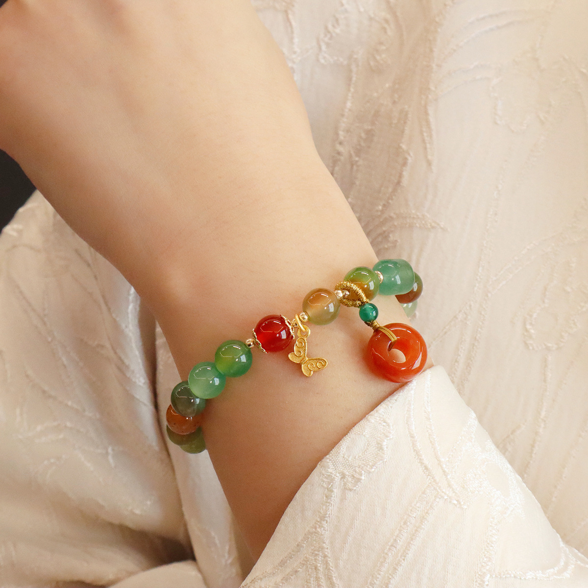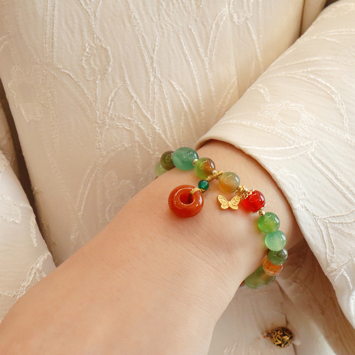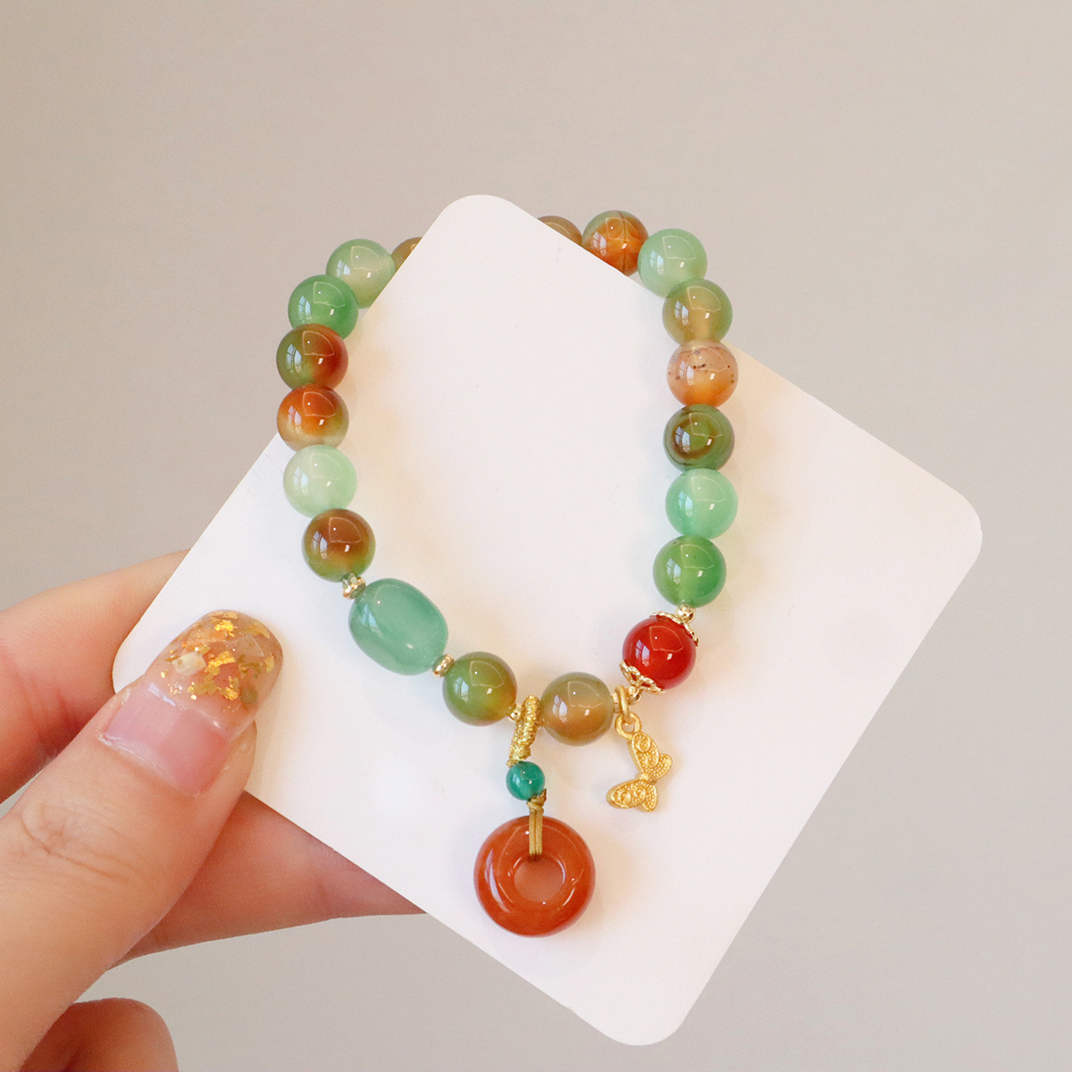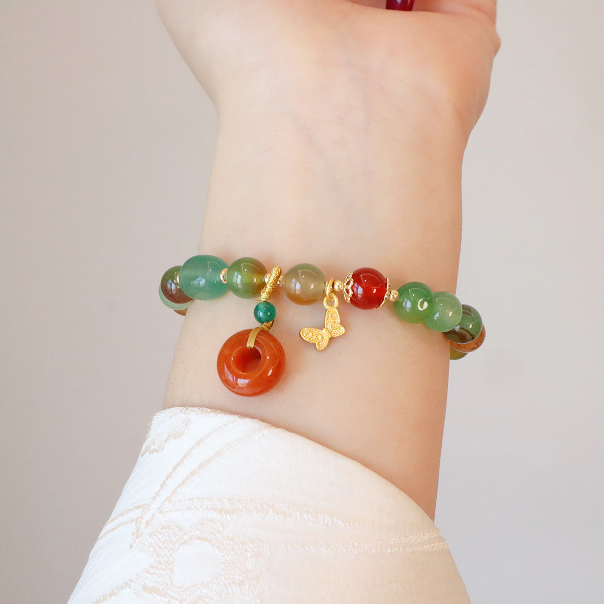 Style: 8MM natural peacock green agate butterfly peace buckle, 8MM natural peacock green Jinsi Jade Lily