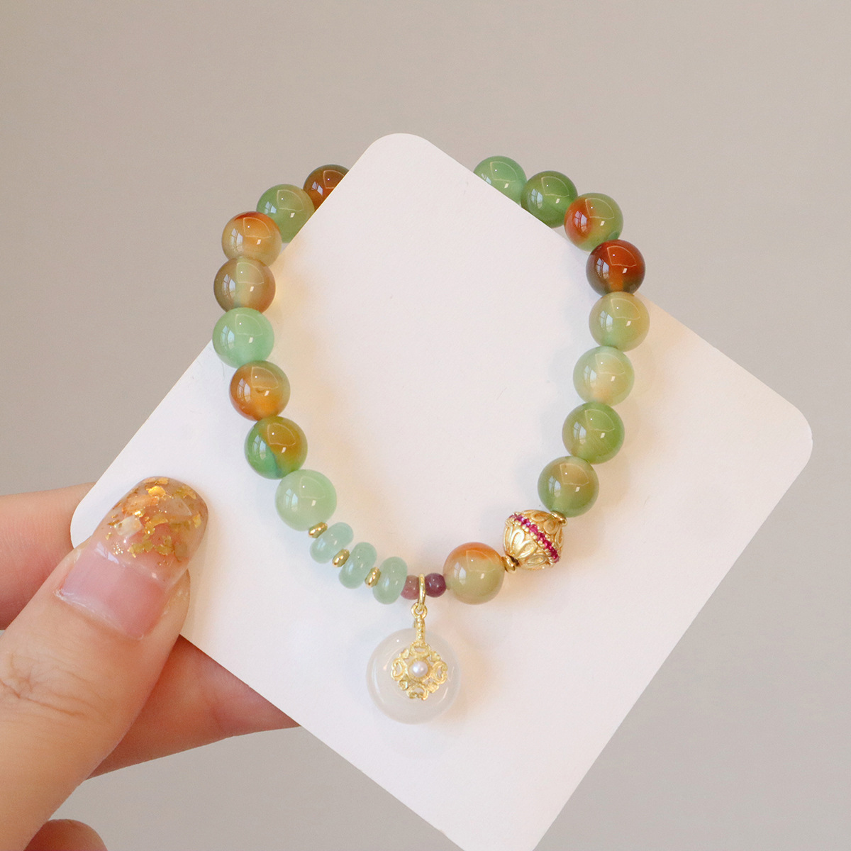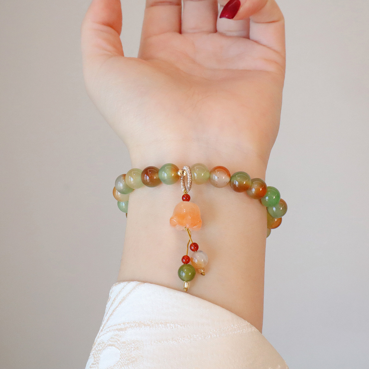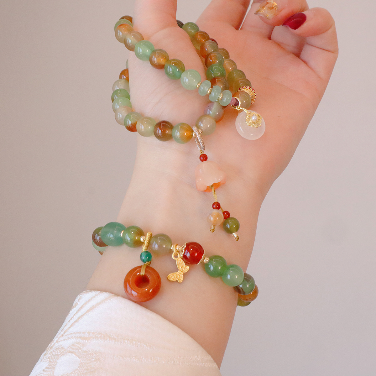 Style: 8MM natural peacock green agate butterfly peace buckle, 8MM natural peacock green Jinsi Jade Lily