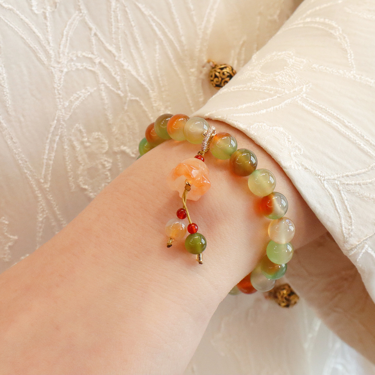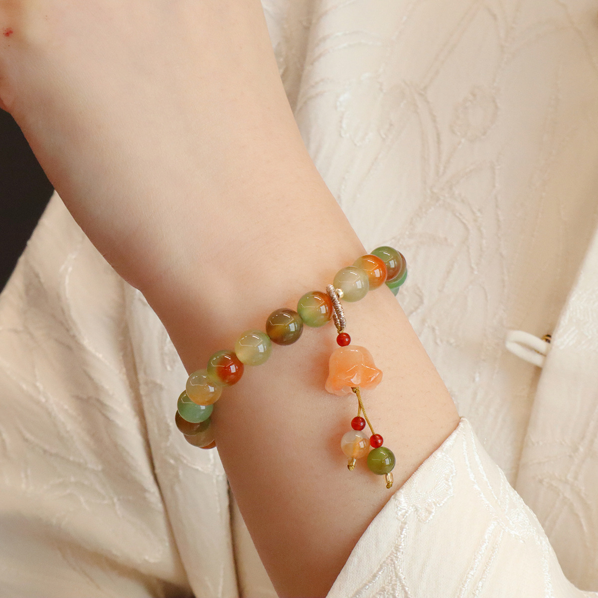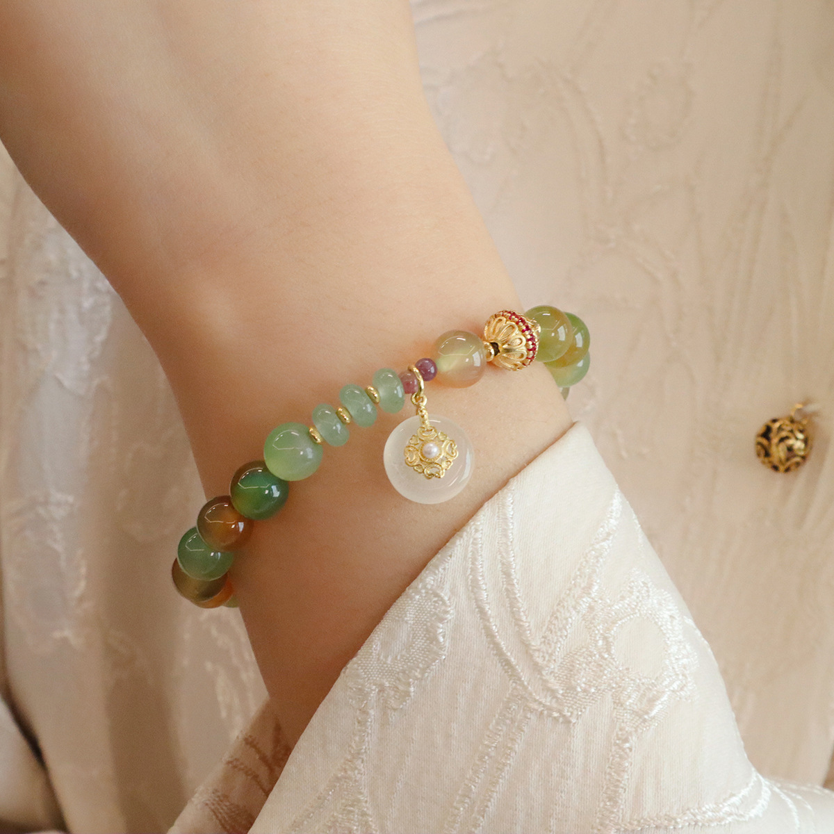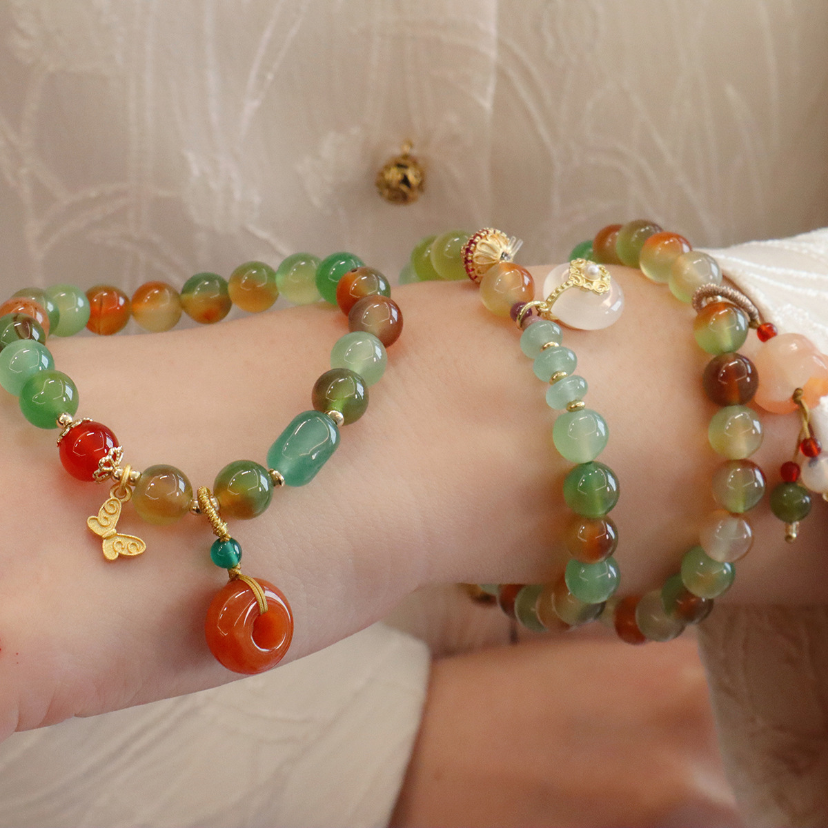 Style: 8MM natural peacock green agate butterfly peace buckle, 8MM natural peacock green Jinsi Jade Lily