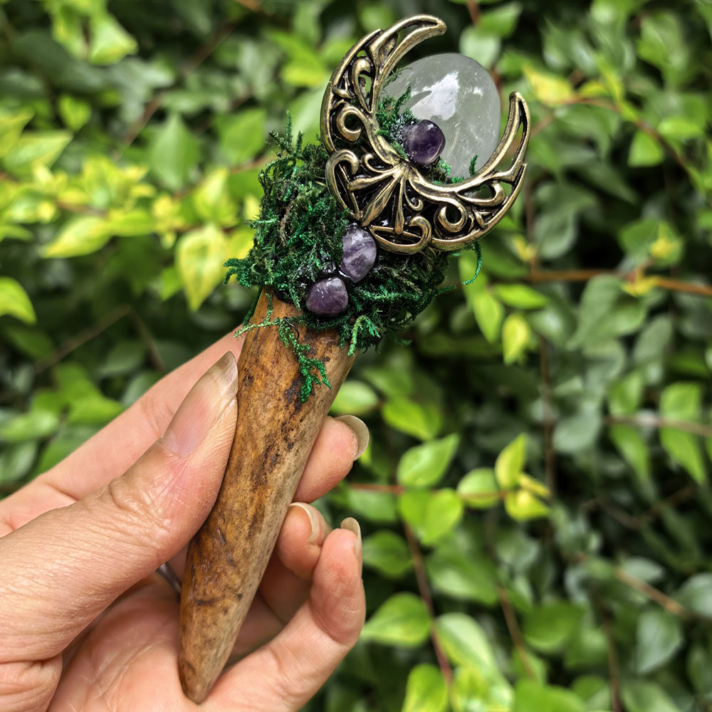 Purity: 1 amethyst Merkabah gold three moon, 2 pink crystal tip column three moon accessories, 3 Cherry agate White k hollow moon, 4 green aventurine pointed columns ancient bronze vintage Moon, 5 blue sand pointed columns antique silver vintage Moon, 6 citrine flower witchcraft Moon, 7 white crystal ancient bronze hollow moon, 8 light amethyst rock wiccan moon pendant, 9 obsidian pointed column Devil eye pendant