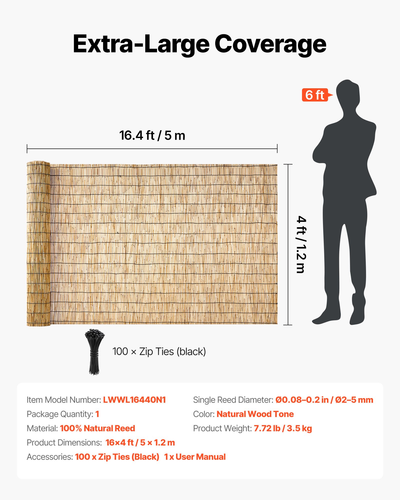 Custom Fit: Our reed fence supports trimming or connecting panels to fit wire mesh, wood fencing, or metal railings. Includes black zip ties and clear instructions—no special tools needed. Secure it in minutes for a clean, tailored look