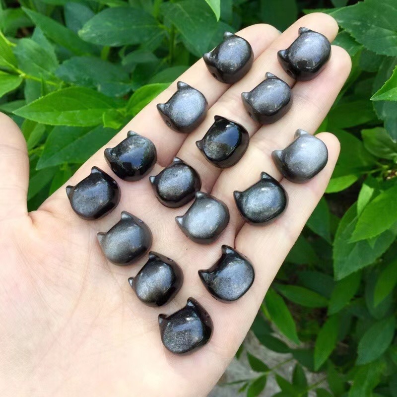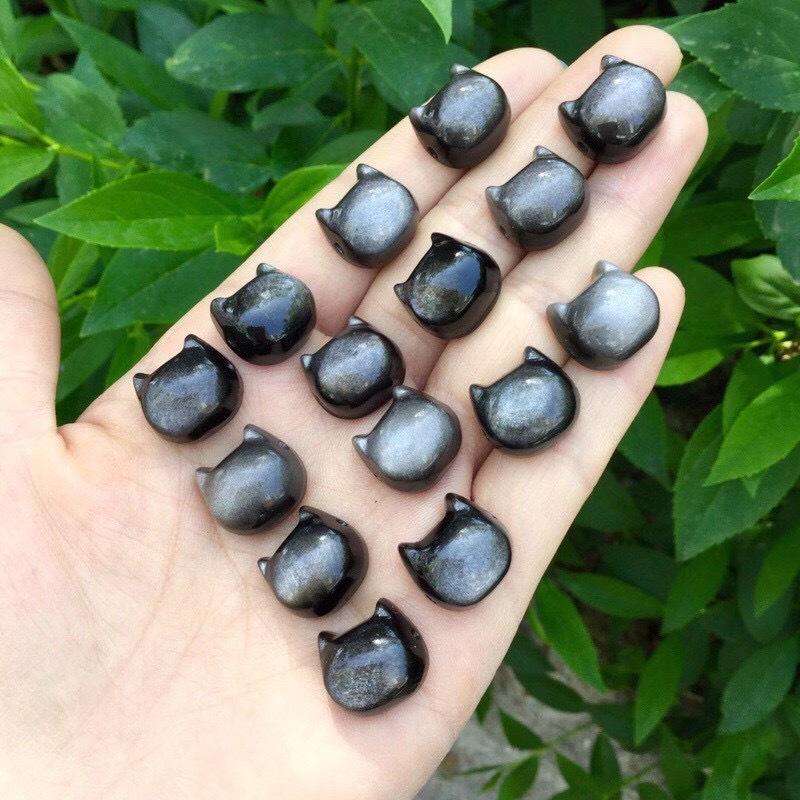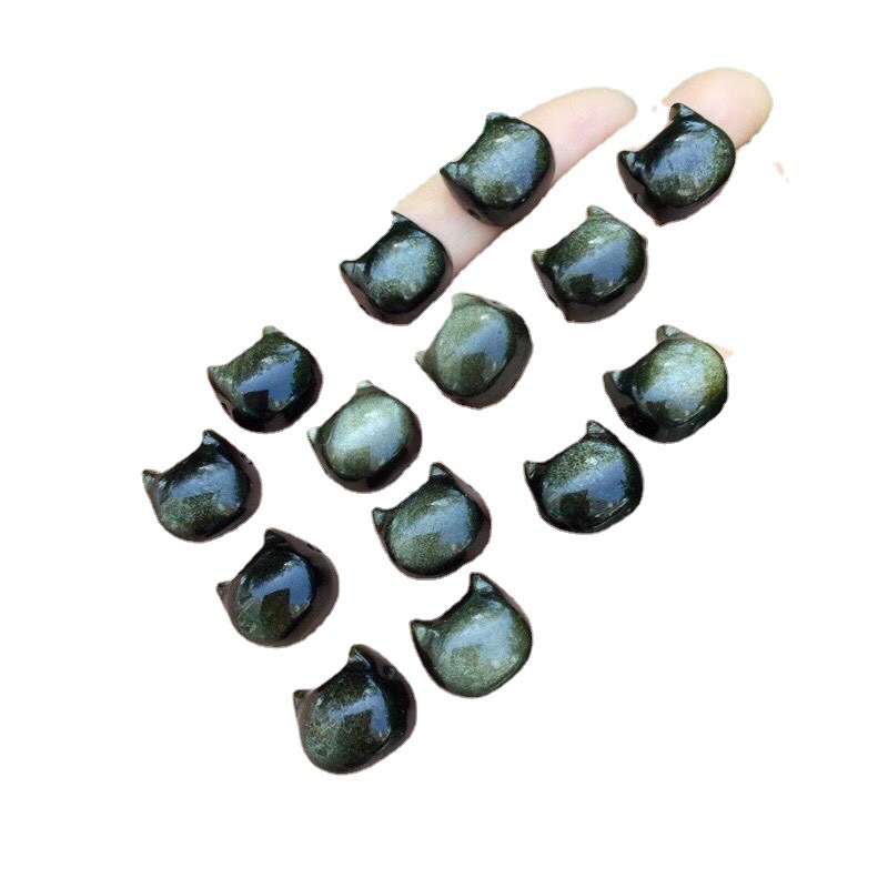 Natural Silver Yao Stone Cat Head Accessories Jewelry Loose Beads