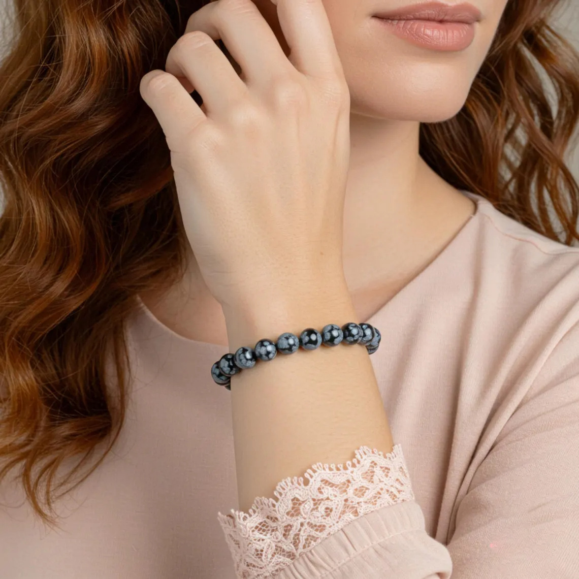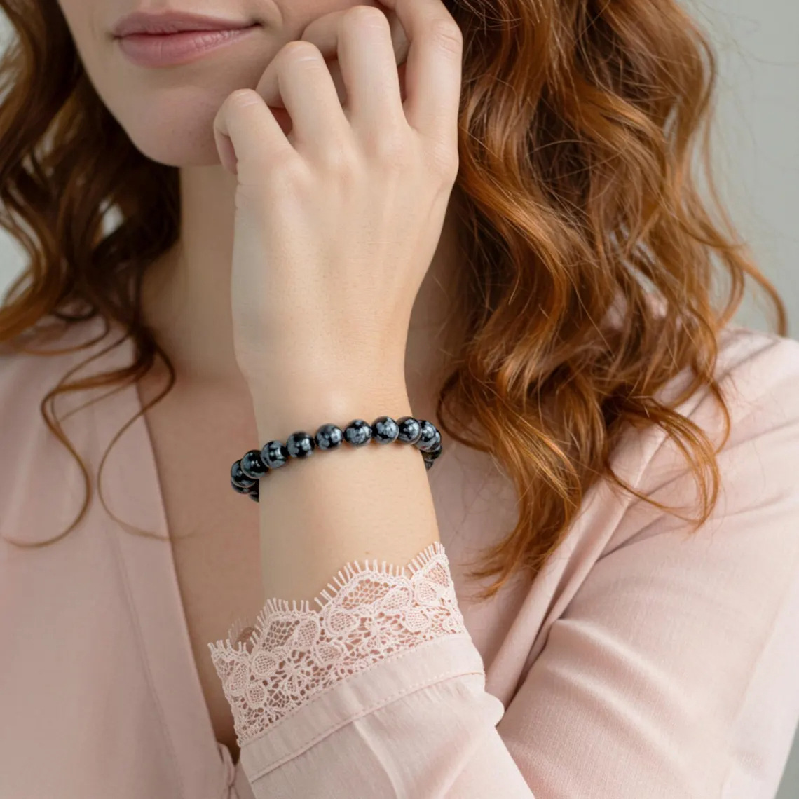 Natural Snowflake Stone Bracelet Single Ring