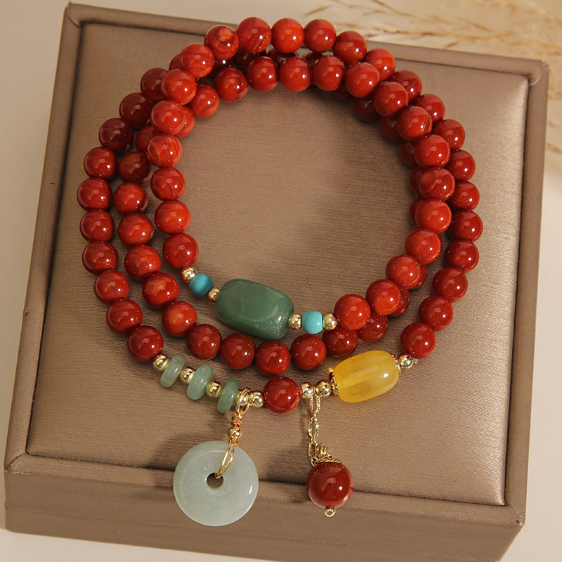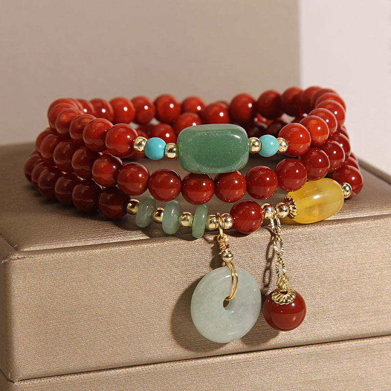 Natural South Red Agate Multi-layer Bracelet Retro Ethnic