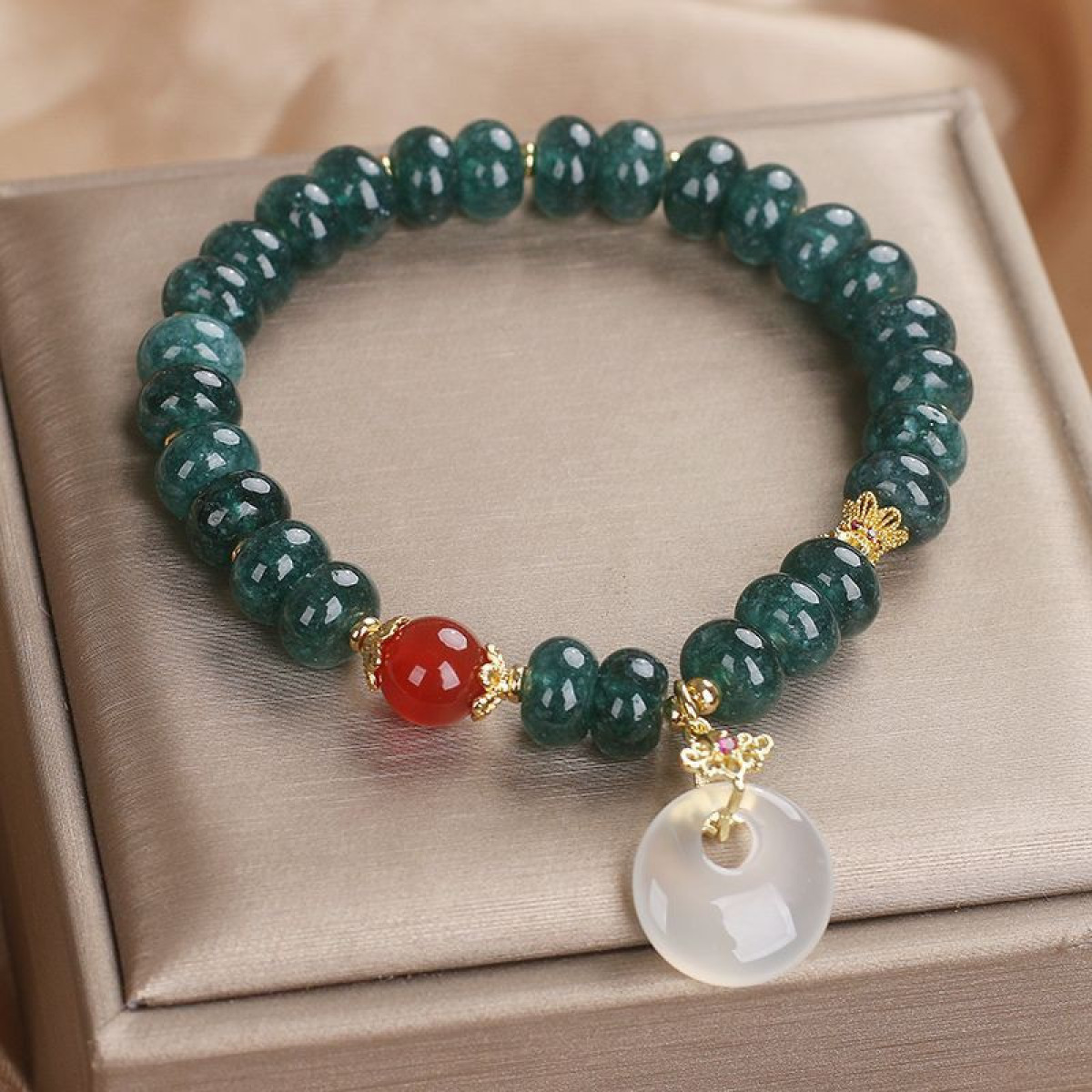 Color: plate beads-natural stone blue water jade buckle bracelet, round beads-natural stone blue water jade buckle bracelet