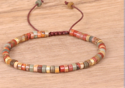 Colors: Pink Crystal, Sea Blue Treasure, Red Striped Stone, Green Dongling, Sparkling Stone, Amethyst, African Pine, Tiger Stone, Dragon Blood Stone, Blue Gold, Picasso, Blue Stripe, Drawing, Indian Agate, Dark Green, Spotted, Eagle Eye Stone, Ginger Mixed Beads, Blue Dotted Stone, Black
