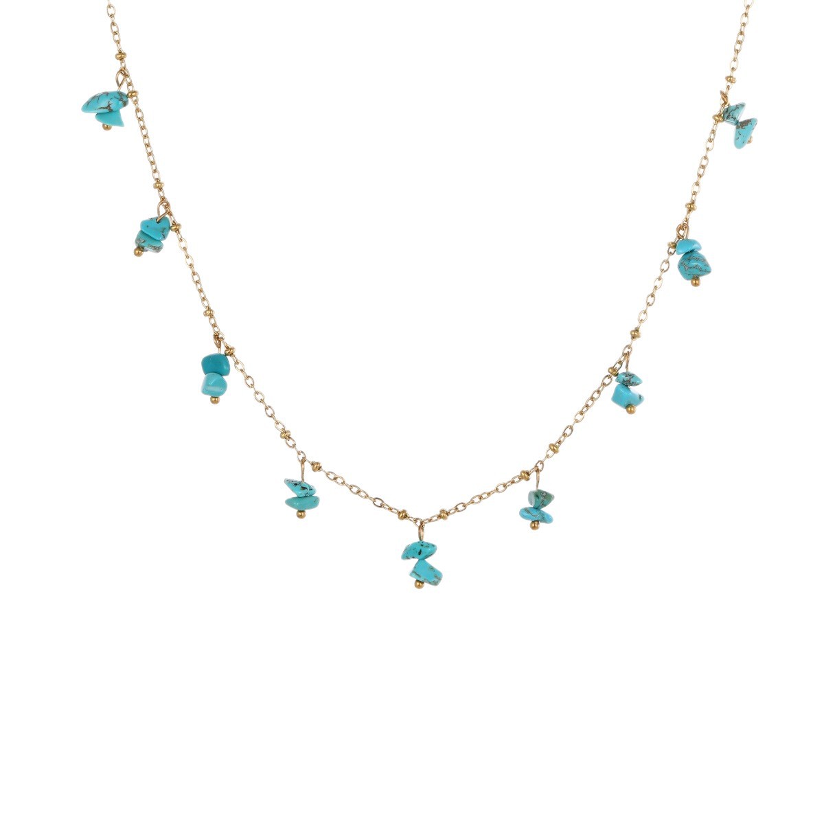 Natural Stone Necklace Stainless Steel Clavicle Chain Gold-plated Turquoise Necklace