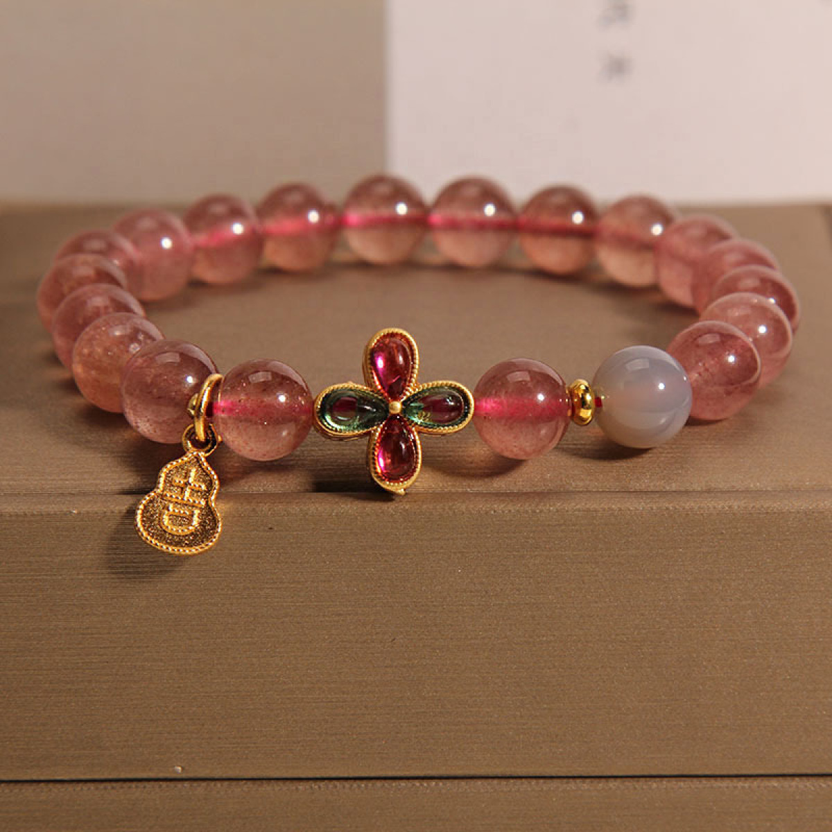 Color: Strawberry quartz four-leaf clover auspicious calabash pendent