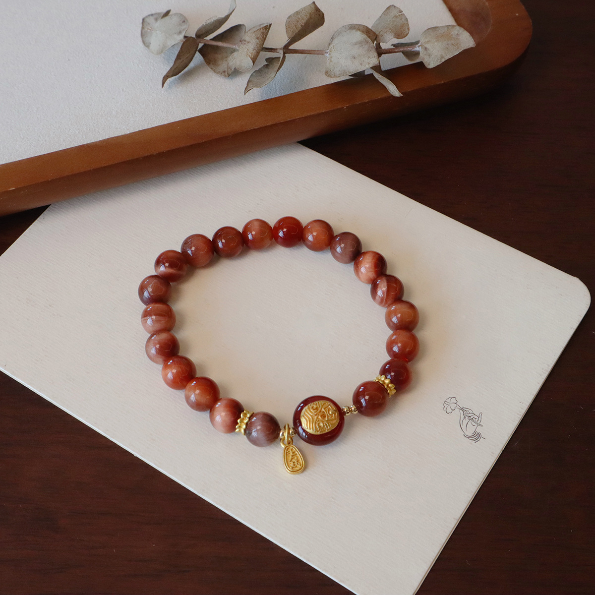 Color: natural Tigereye red agate zachilam, natural Tigereye pumpkin red agate jequirity bean, double circle natural Tigereye Ebony safe and happy