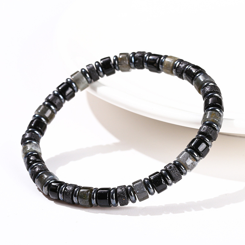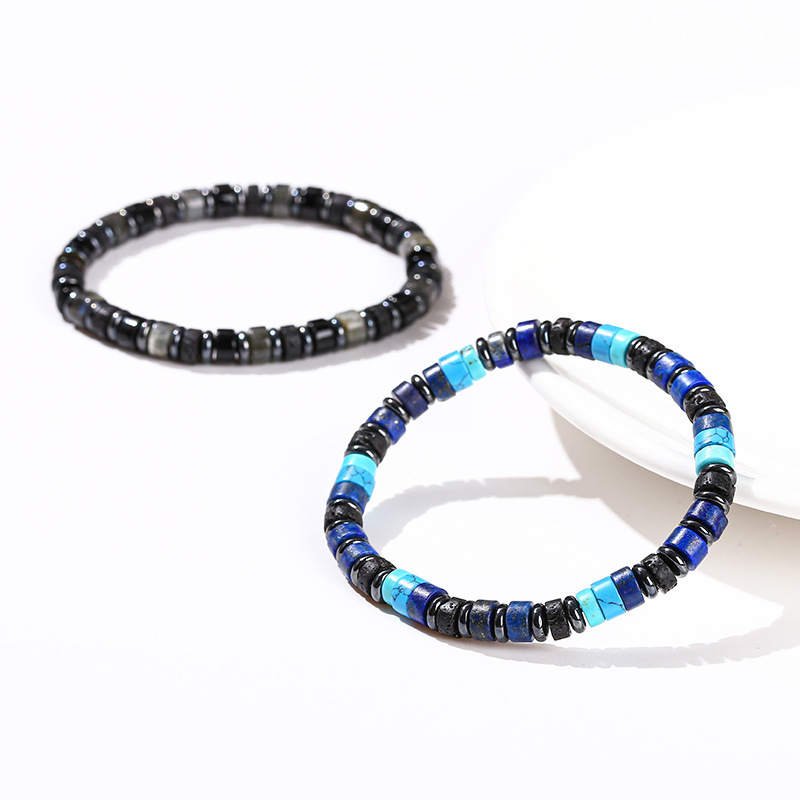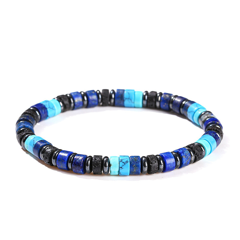 Color: natural volcanic rock aragonite hematite interval beads bracelet, natural hematite blue pine lapis lazuli interval beads bracelet