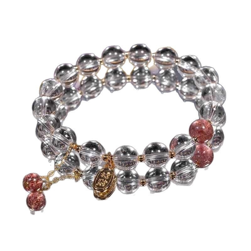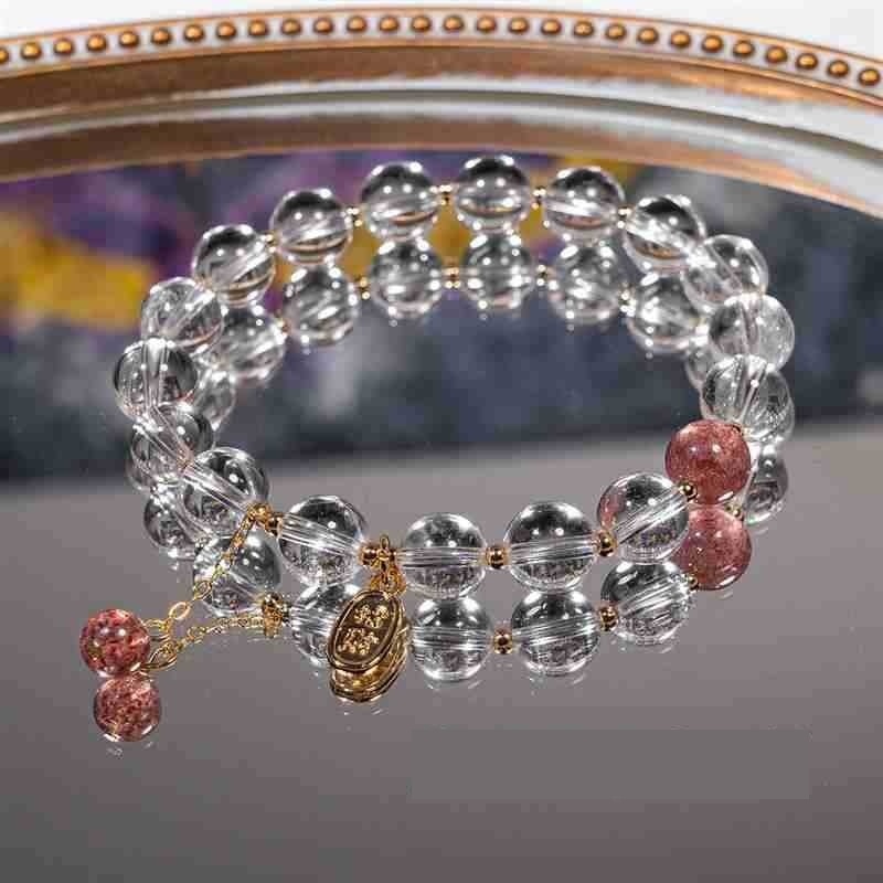 Color: natural white crystal lucky fortune, drawer gift box [Matcha Green], fresh transparent gift box, white crystal strawberry crystal beads --- 8MM, imitation white crystal pink crystal bracelet