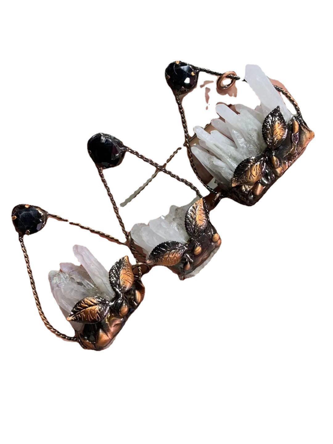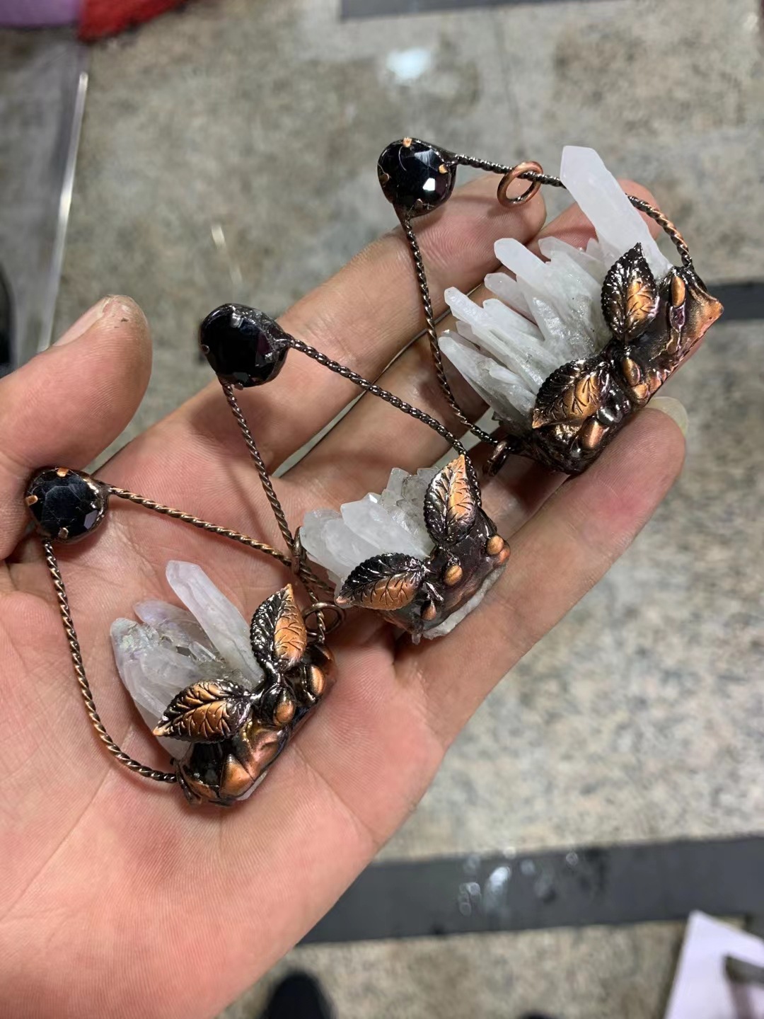 Natural White Crystal Pillar Lotus Base Vintage Necklace Pendant