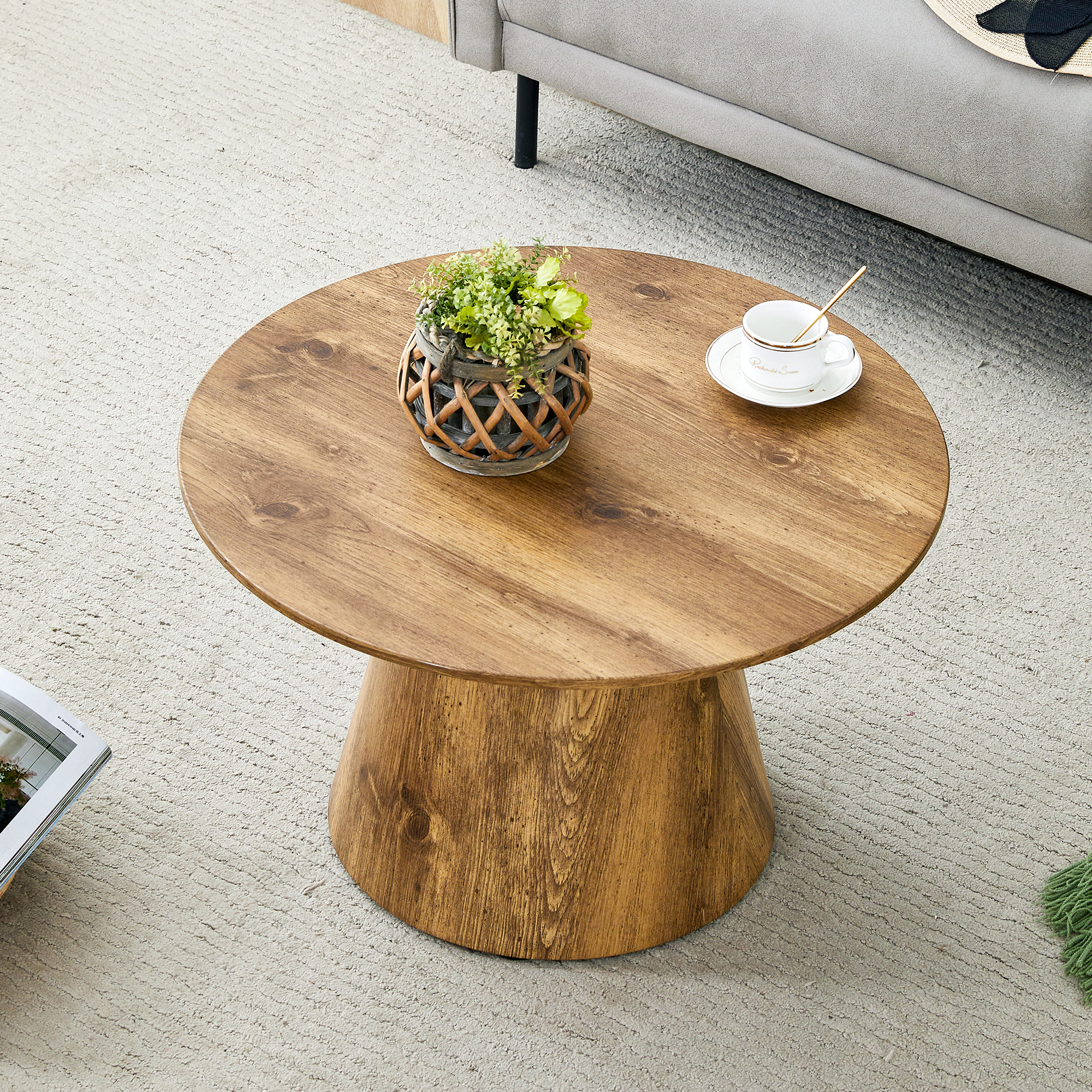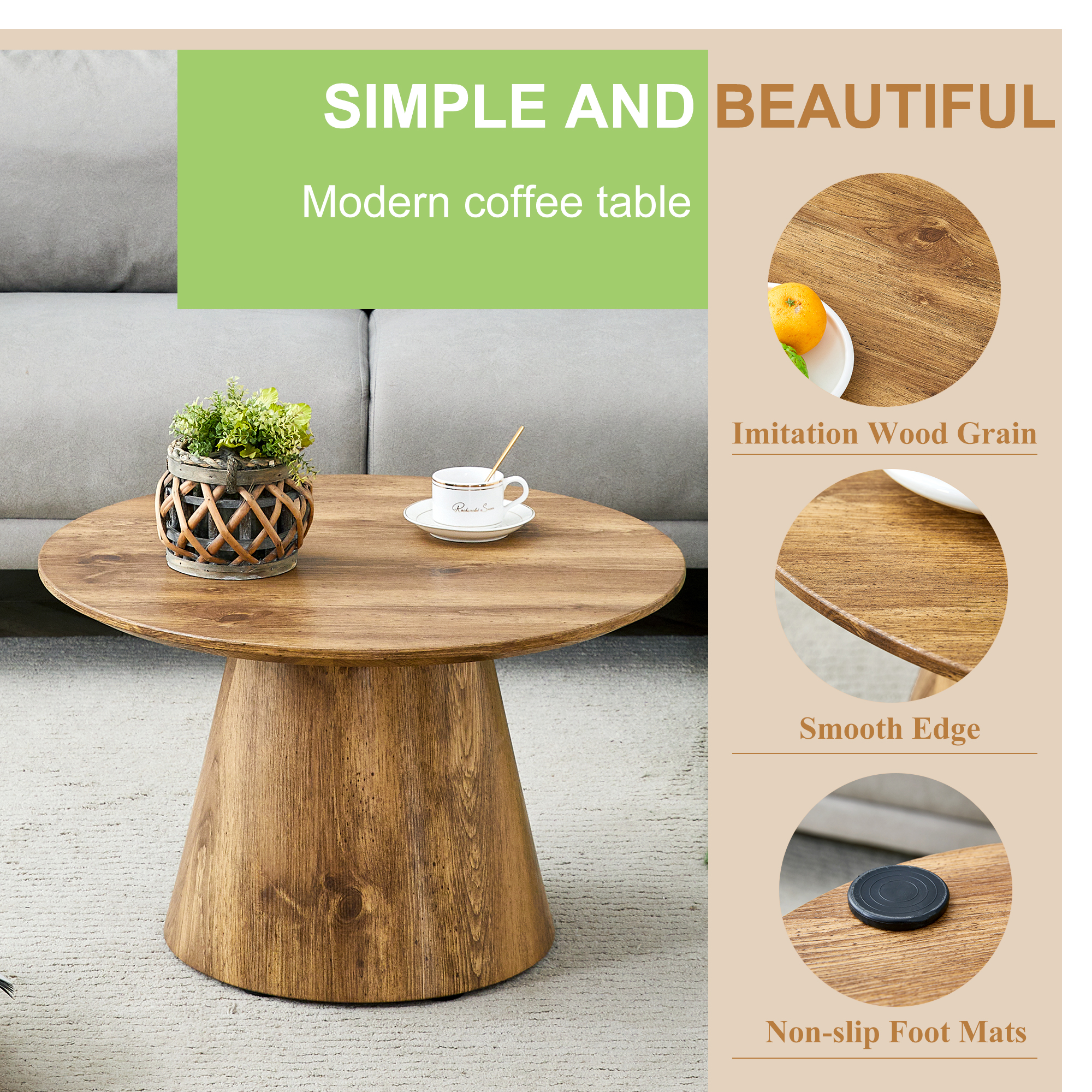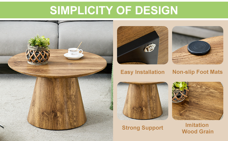 Product Name:Natural Wood Grain MDF Round Coffee Table - 23.6" Diameter, 13.8" Height.Natural Wood Grain Texture Sticker,Exquisite Wood Grain Surface,Flexible MatchingMRound Tabletop Design.