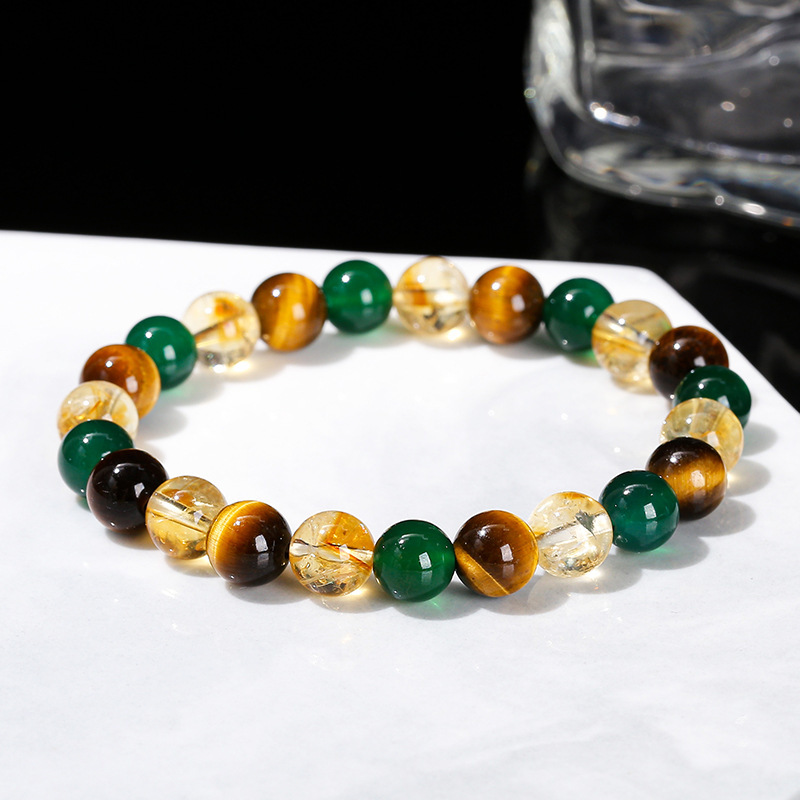 Color: 7A natural yellow tiger eye green agate citrine mixed string bracelet