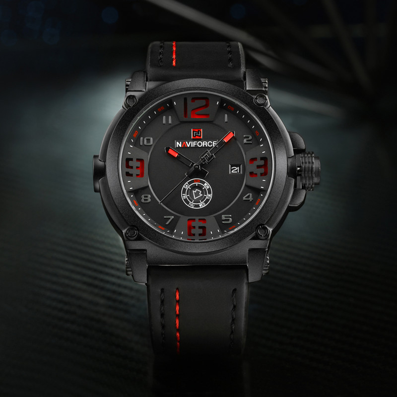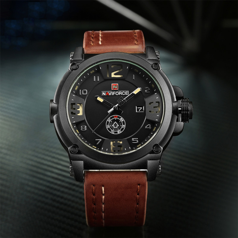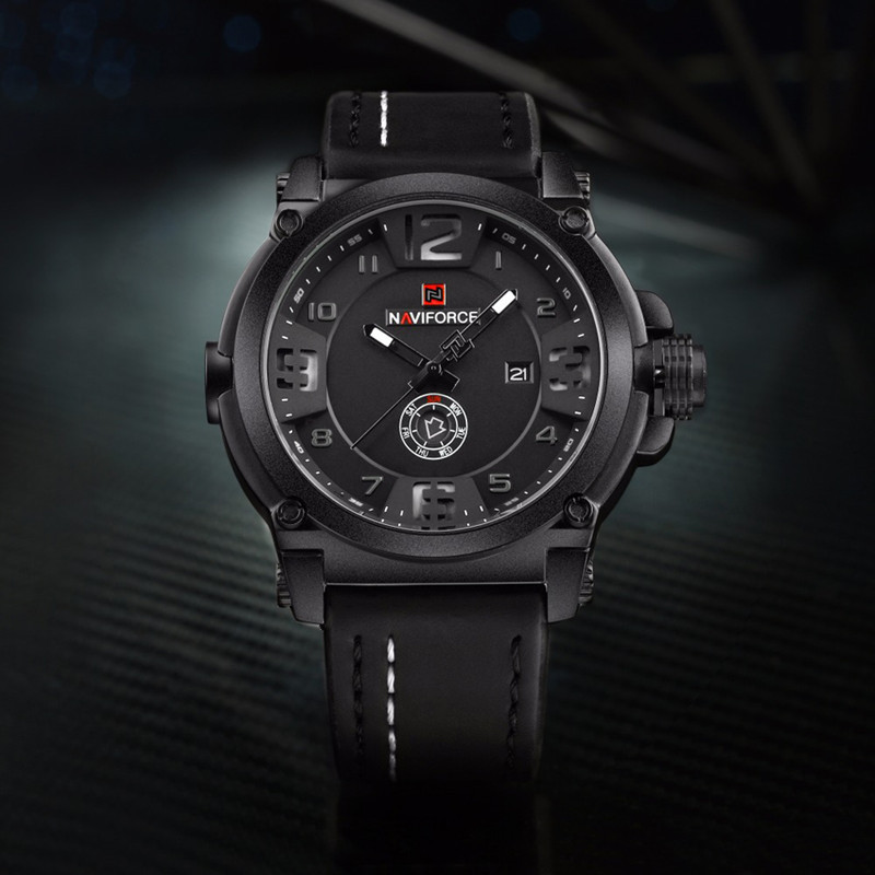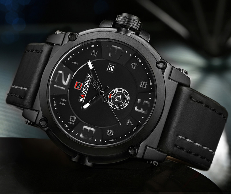 Brand: NAVIFORCE led Xiang Model: NF9099 Strap material: belt Case material: alloy case Movement model: Seiko AL-33 Waterproof: 30 meters Dial diameter: 45.5mm Case thickness: 14mm Strap length: 245mm Strap width: 24mm Product weight: 93 grams Buckle type: pin buckle Display Type: Pointer Date Week Applicable gifts: lover, boyfriend, customer, colleagues, classmates, friends, foreigners, youth, teenagers Applicable gifts occasions: public relations planning, business gifts, Thanksgiving, wedding, Chinese Valentine's Day, Valentine's Day, birthday, Christmas, Halloween, dating Please note: waterproof, can not be worn to swim, bath, soak, and underwater operations, can withstand drizzle, small splashes, in order to maintain the longer life of the watch, to avoid contact with corrosive substances.