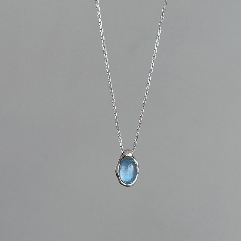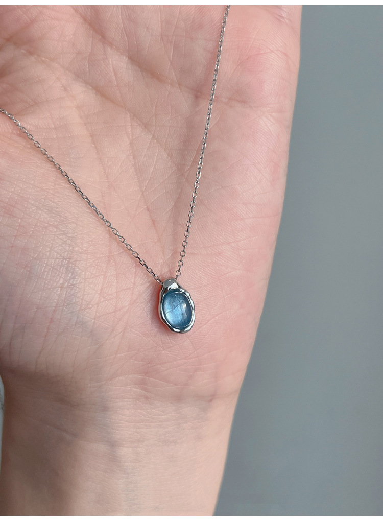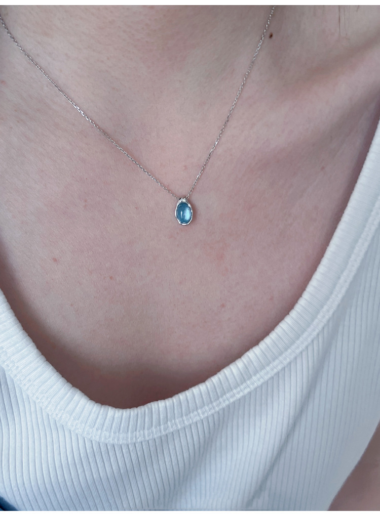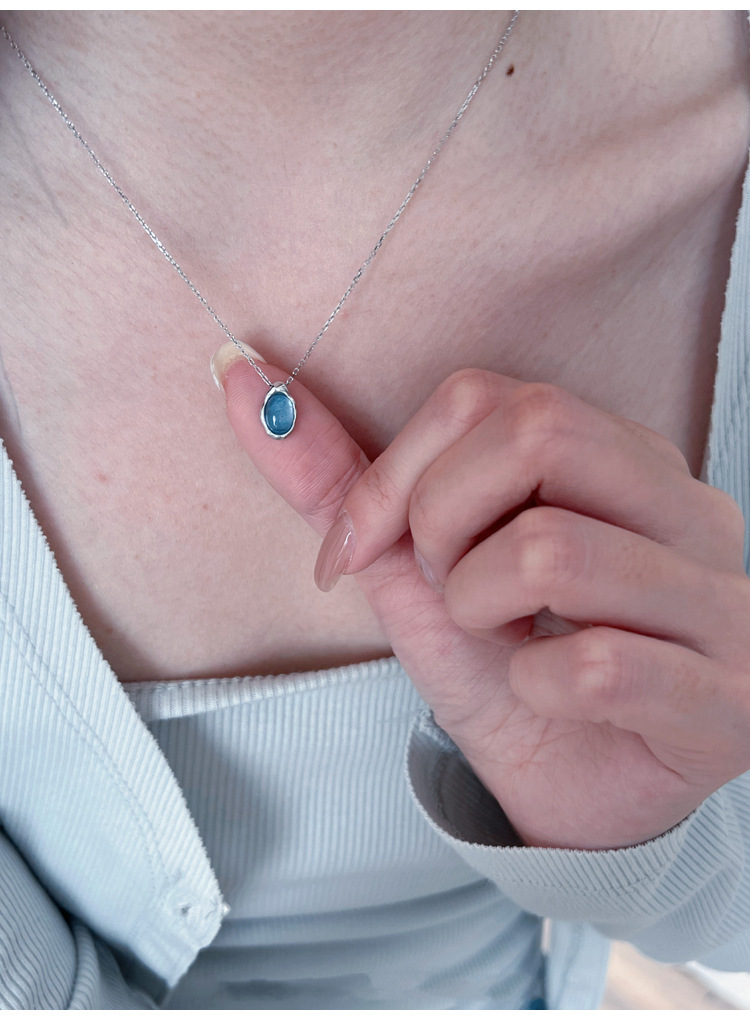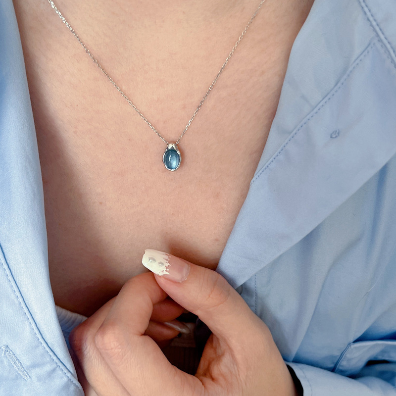 Navy Blue Water Drop Necklace Women's Light Luxury Small Design Refined And Simple Advanced Pendant Clavicle