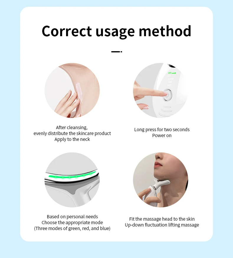 2. [Anti-Aging for Face and Neck] This multifunctional face neck massager has many different LED light modes that are not only suitable for massaging the face, and neck but also can be used to massage the arms, shoulders, and other parts, tightening the sagging skin and relaxing the muscles.