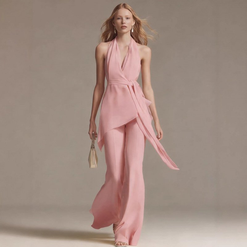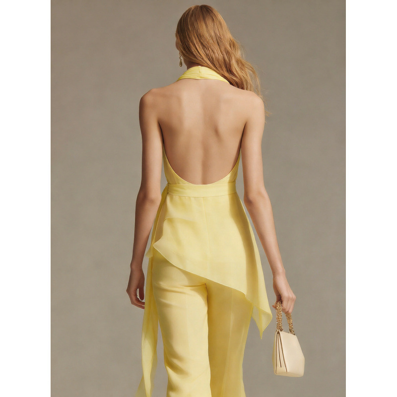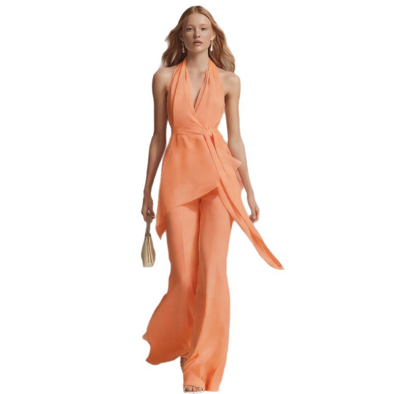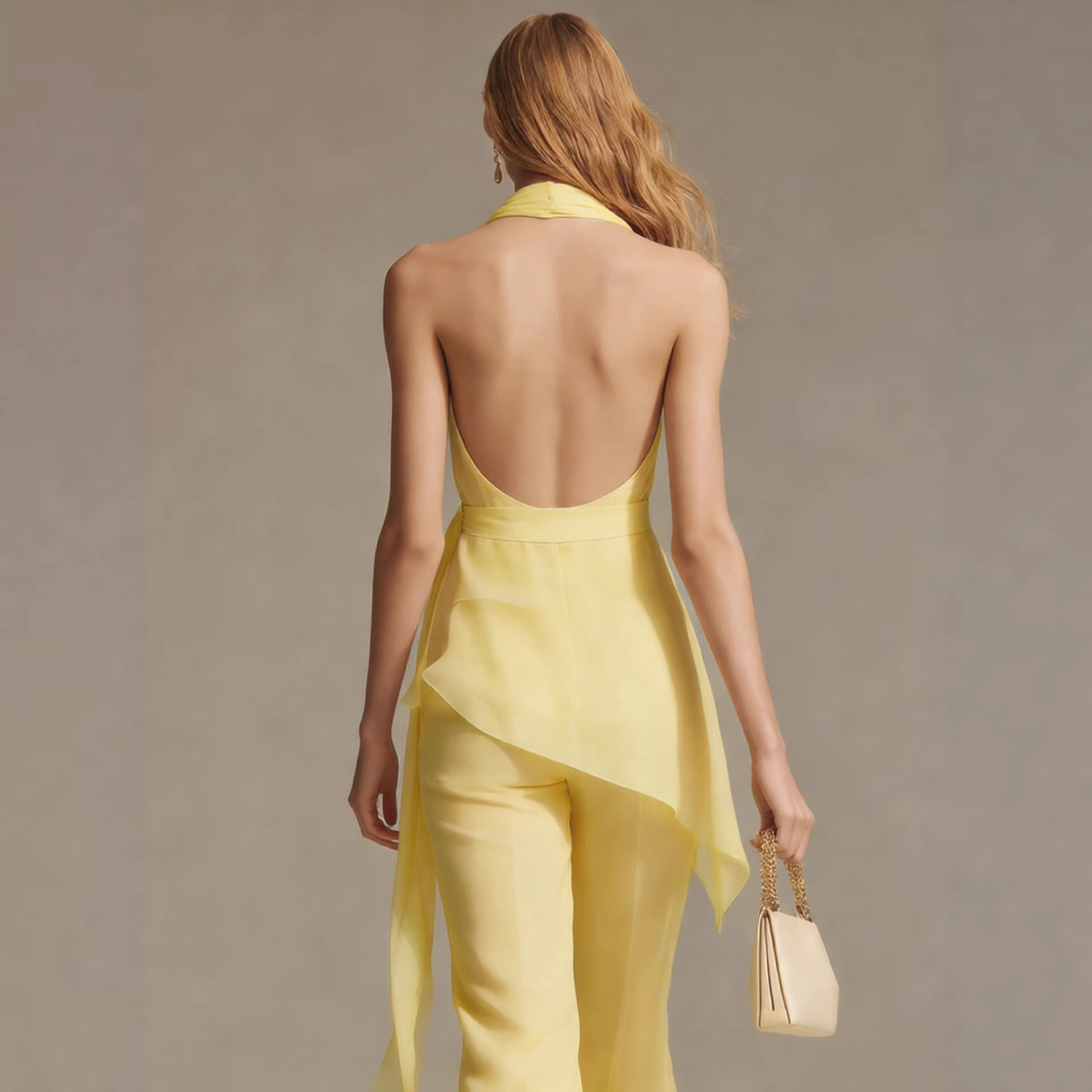 Trendy Elements: Solid color, belt, off-shoulder, open back, asymmetrical design