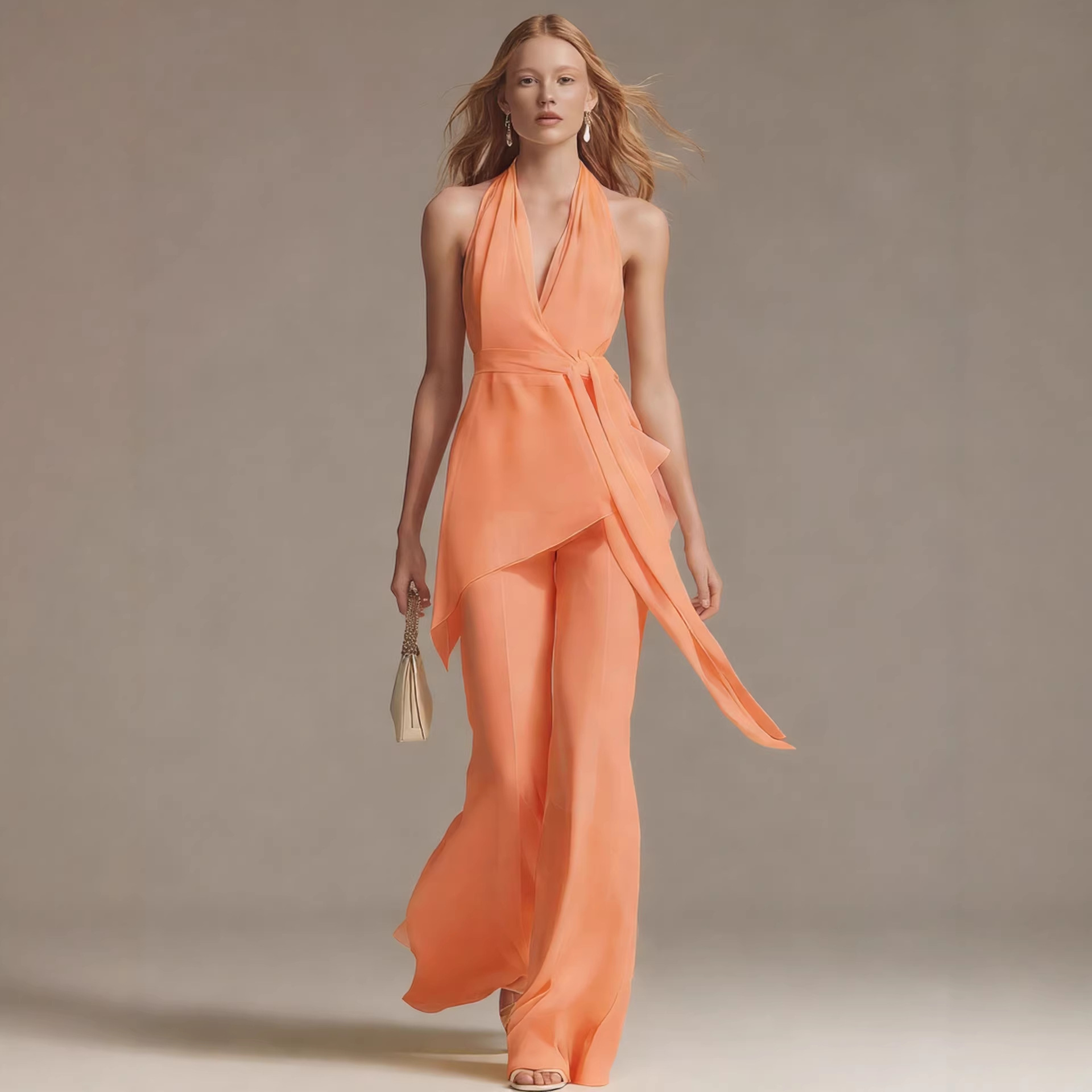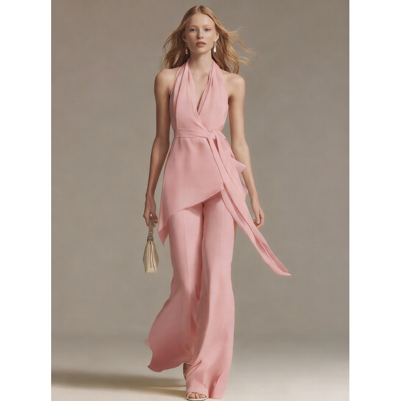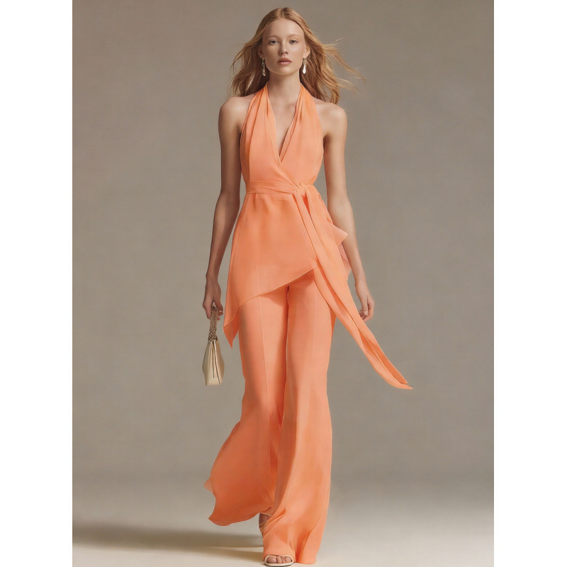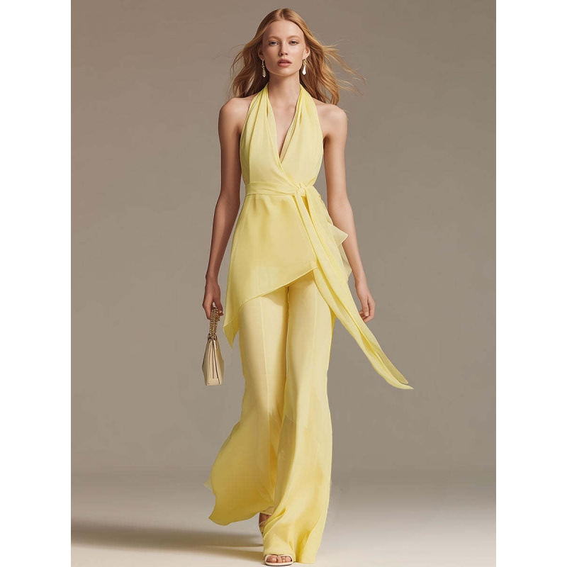 Trendy Elements: Solid color, belt, off-shoulder, open back, asymmetrical design
