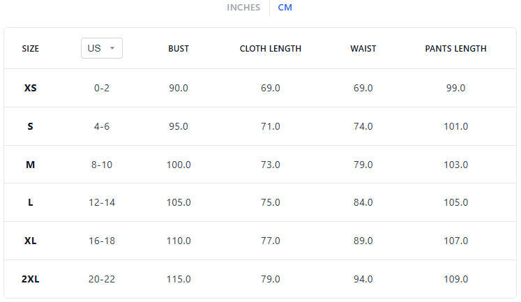 Sizes: XS, S, M, L, XL, XXL