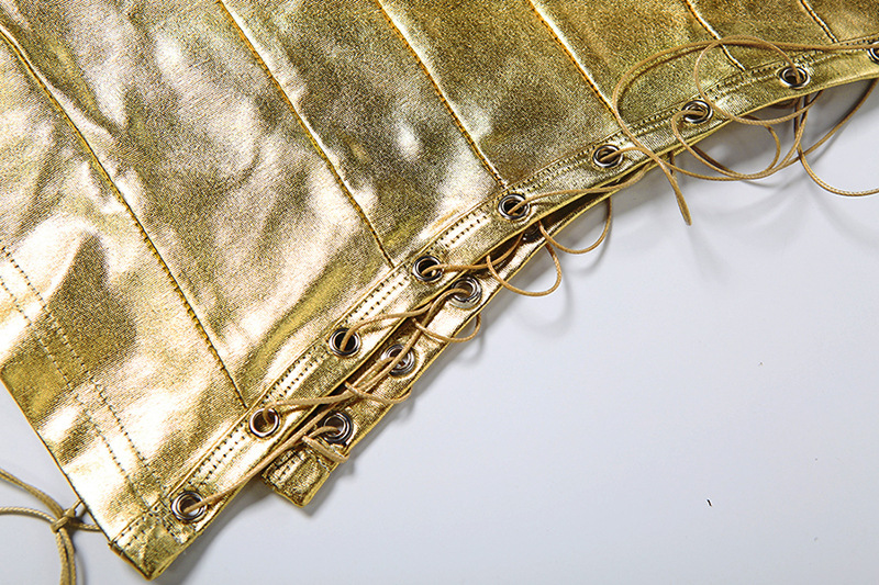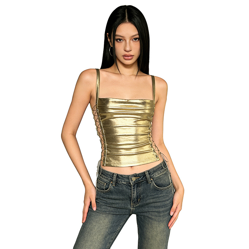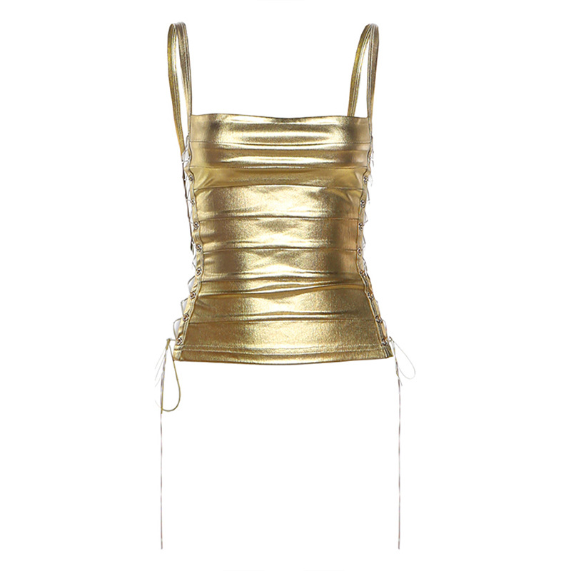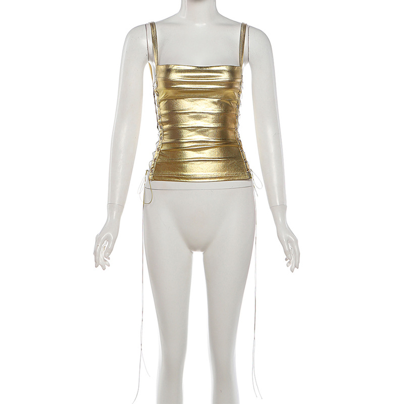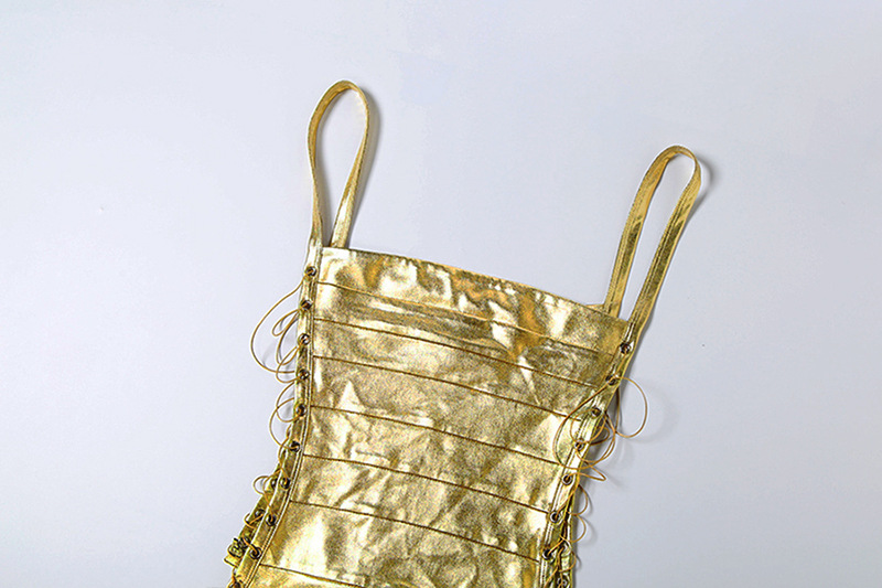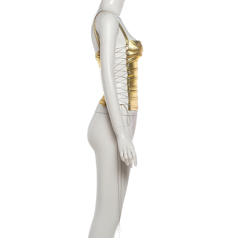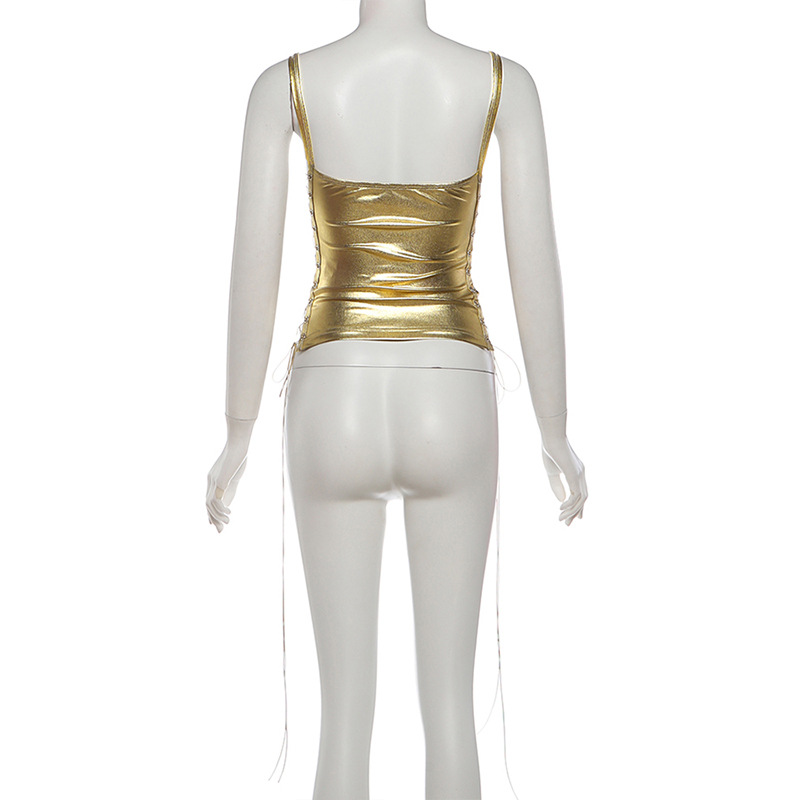 Neck Hanging Backless Gold Hugging Sexy Tank Top