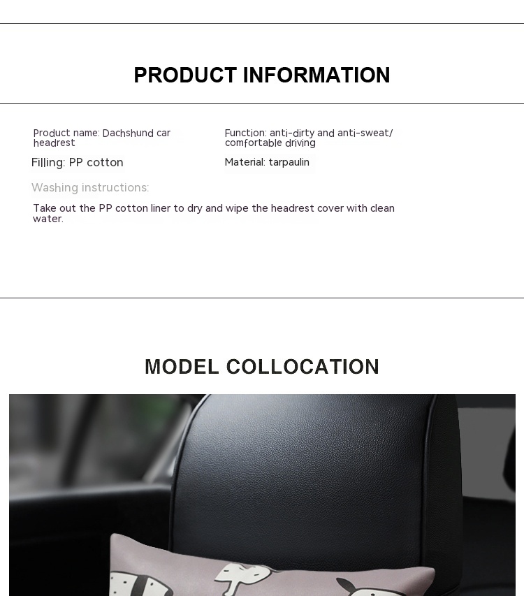 Washing instructions: Take out the PP cotton liner and dry it, then wipe the headrest cover with clean water.