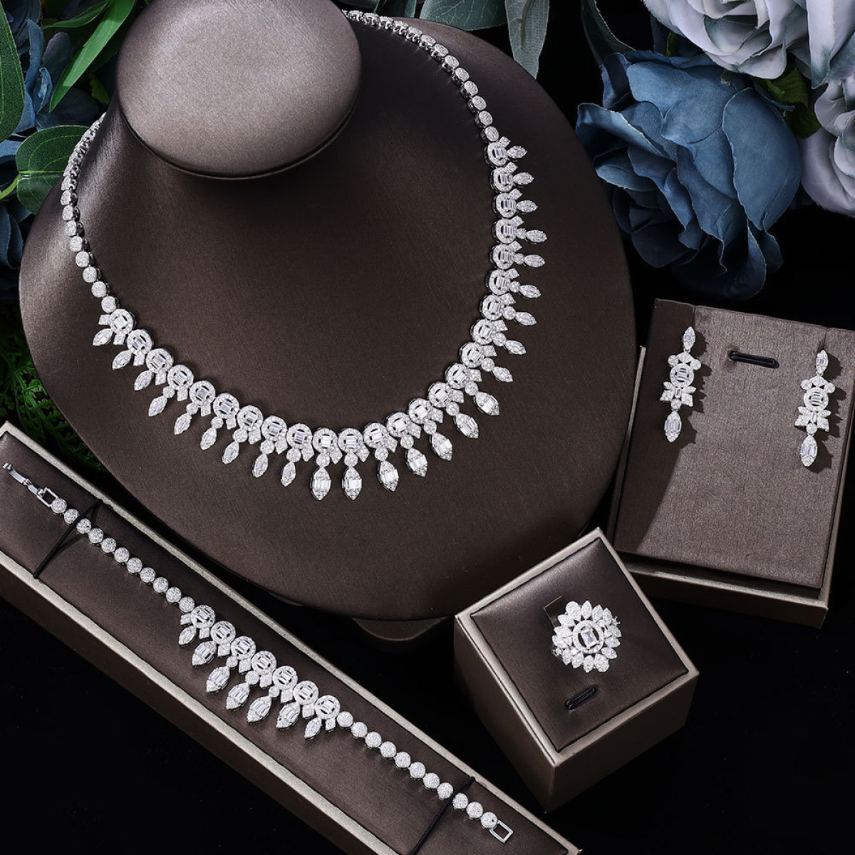 Necklace * 1, Ring * 1 ,Bracelet * 1,1 pair of earrings