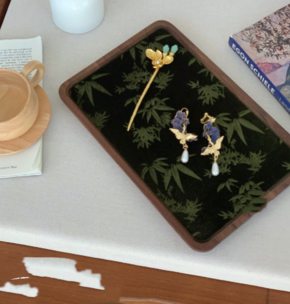Style9: black walnut jewelry tray Jiangnan bamboo ink painting A,