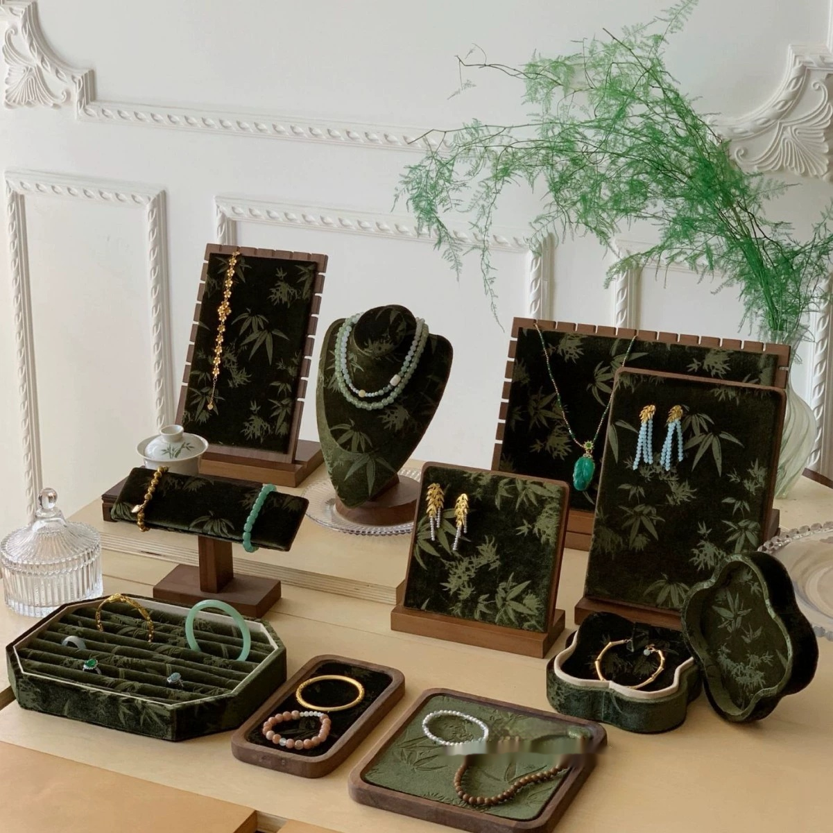Style5: walnut color Jiangnan Ink painting bamboo necklace stand small,
